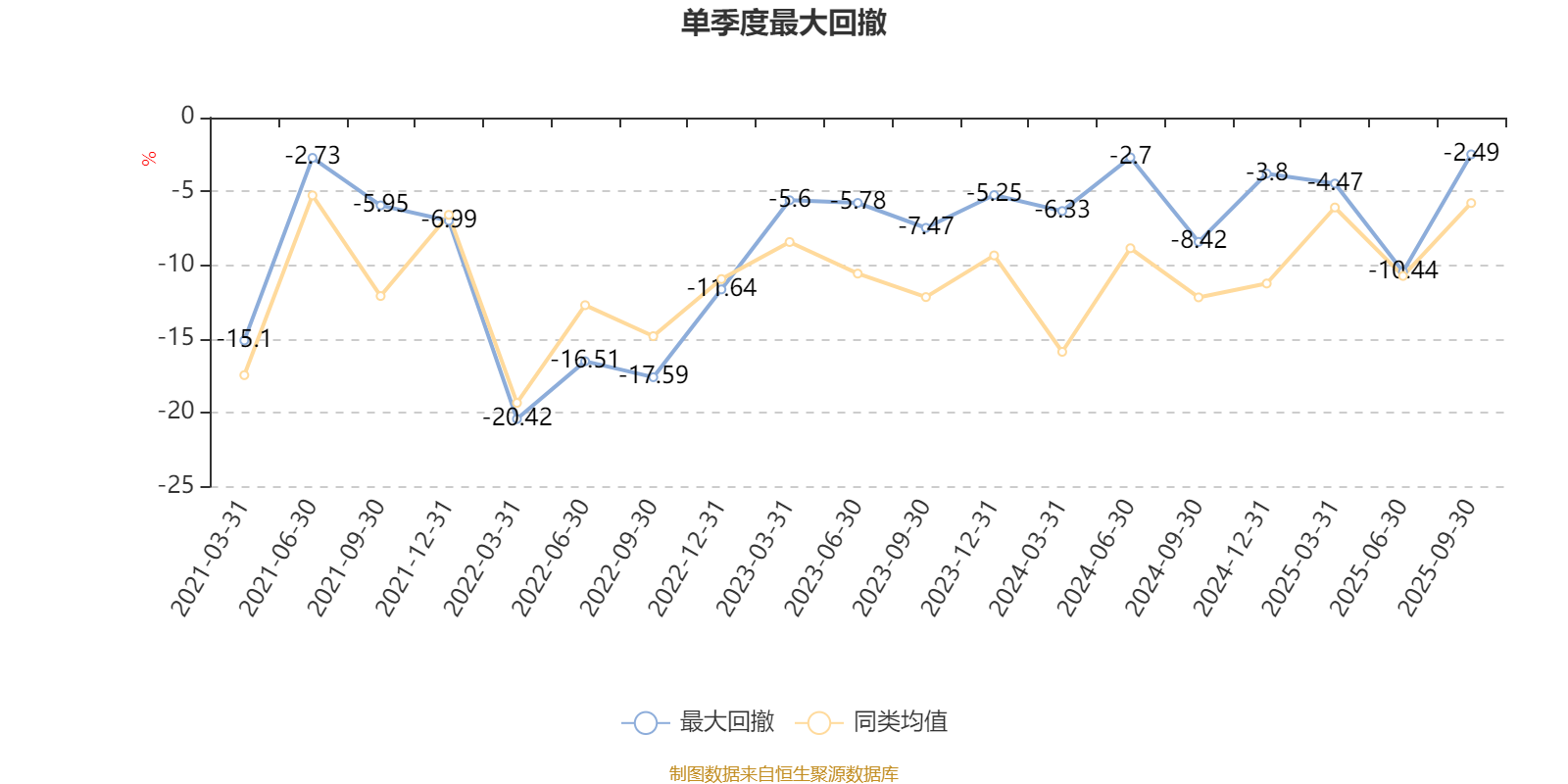 截至10月29日,基金近三年最大回撤为17.5%,同类可比基金排名10/363。单季度最大回撤出现在2022年一季度,为20.42%。