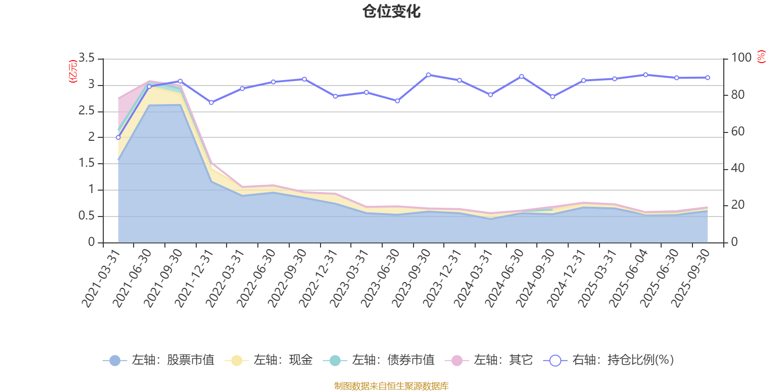 据定期报告数据统计,近三年平均股票仓位为92.96%,同类平均为83.73%。2025年上半年末基金达到91.25%的最高仓位,2021年一季度末最低,为57.18%。