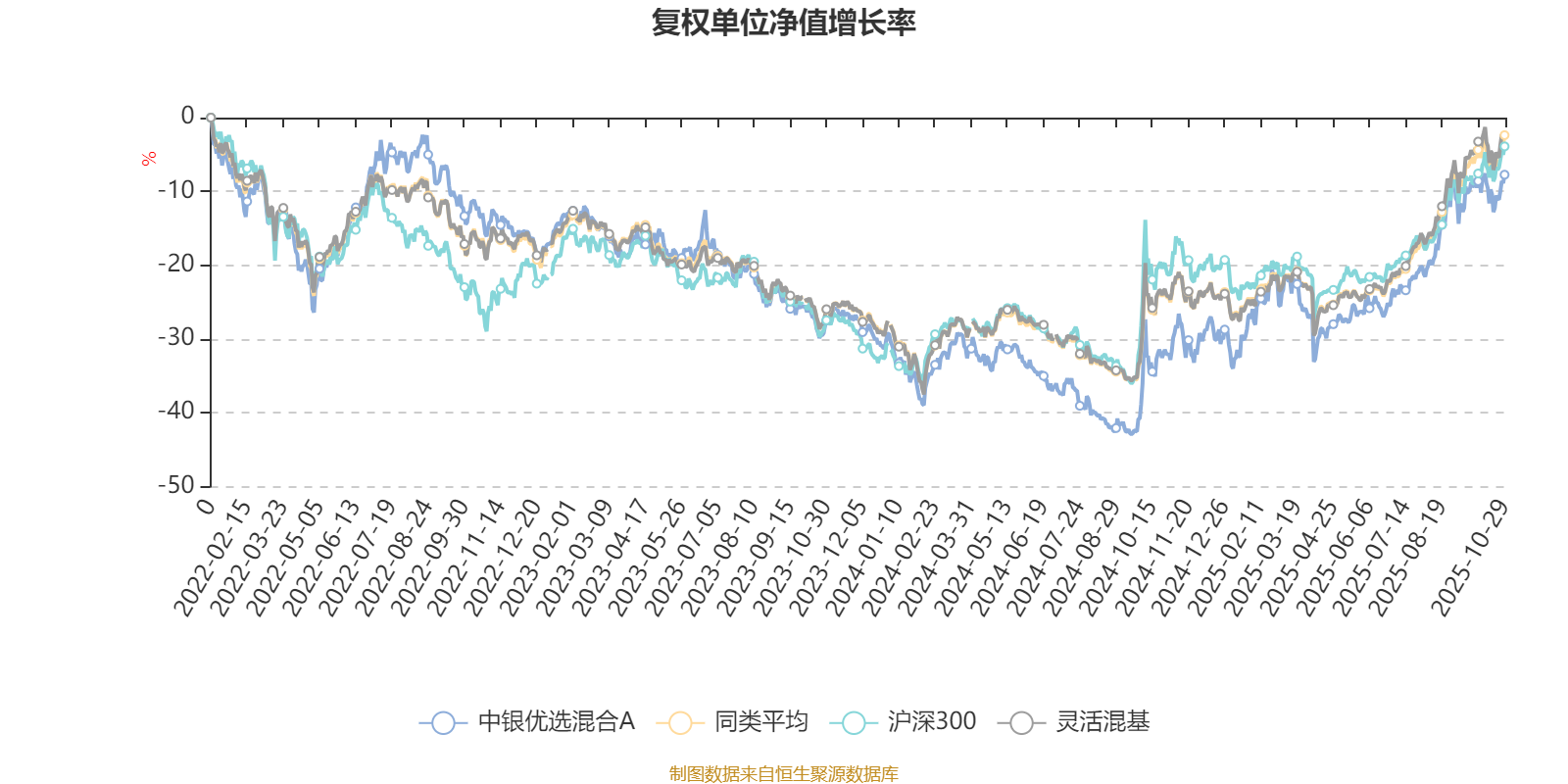 截至10月29日,中银优选混合A近三个月复权单位净值增长率为15.52%,位于同类可比基金514/1287;近半年复权单位净值增长率为27.71%,位于同类可比基金575/1287;近一年复权单位净值增长率为35.56%,位于同类可比基金373/1287;近三年复权单位净值增长率为9.53%,位于同类可比基金832/1286。