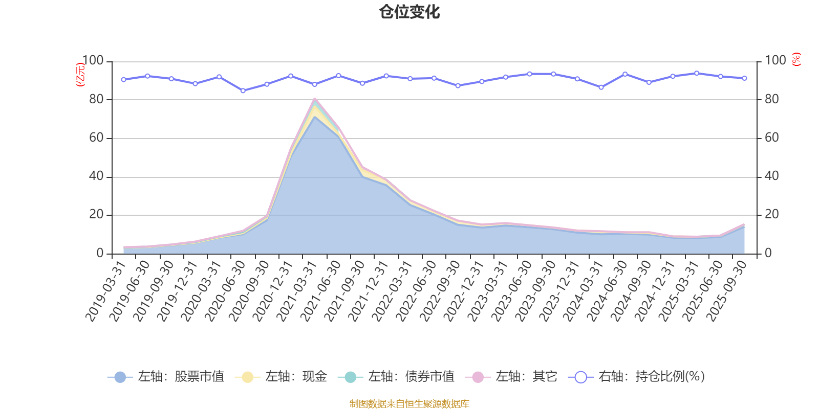 据定期报告数据统计,近三年平均股票仓位为91.48%,同类平均为85.99%。2025年一季度末基金达到93.85%的最高仓位,2020年上半年末最低,为84.77%。