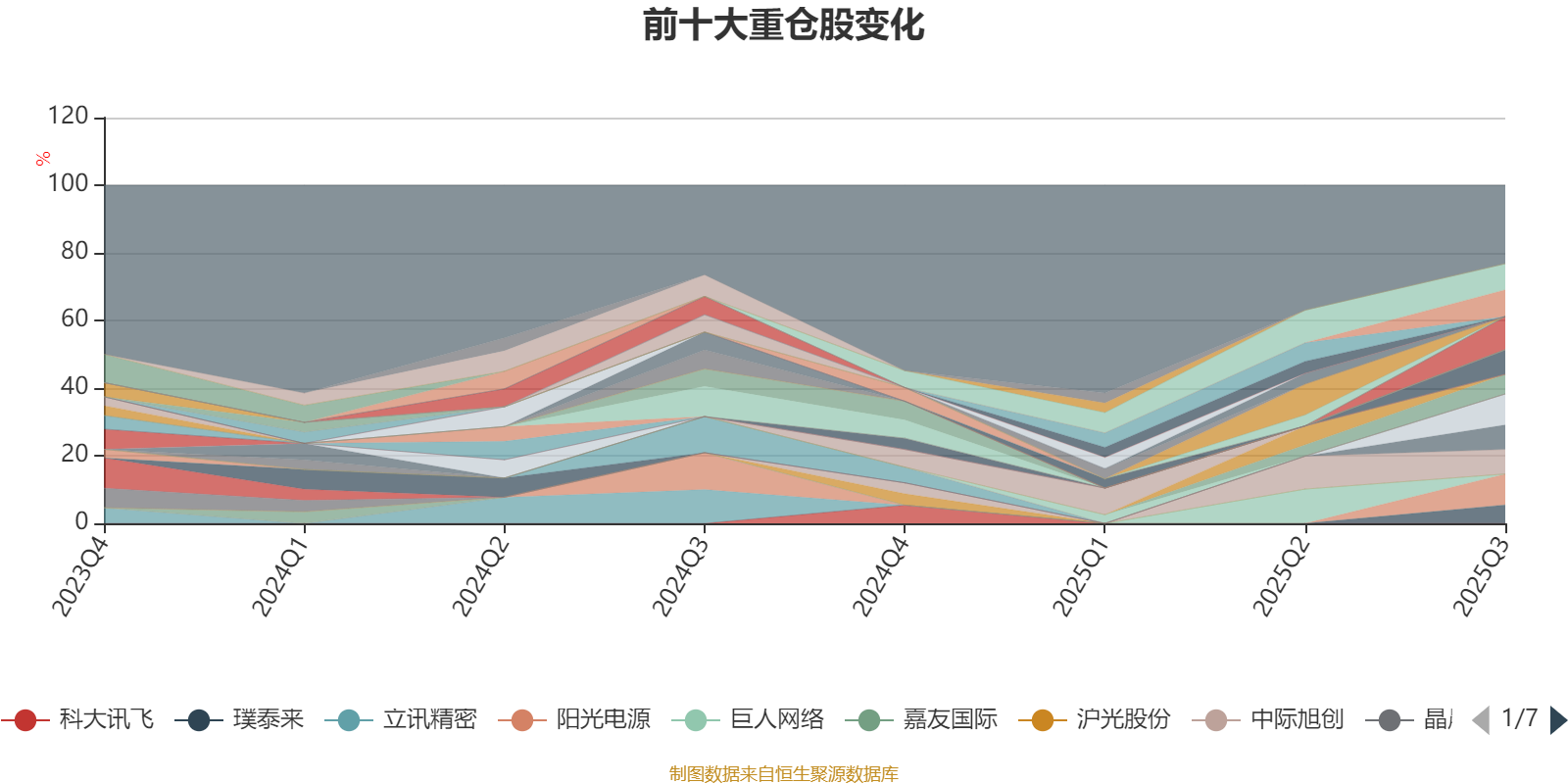 截至2025年三季度末,基金十大重仓股分别是金风科技、阳光电源、中金黄金、工业富联、新易盛、寒武纪、中际旭创、海博思创、大金重工、璞泰来。