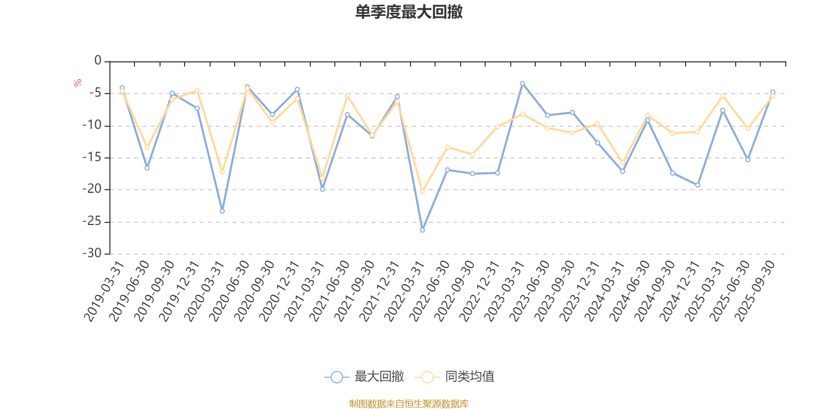 截至10月29日,基金近三年最大回撤为38.23%,同类可比基金排名162/251。单季度最大回撤出现在2022年一季度,为26.3%。