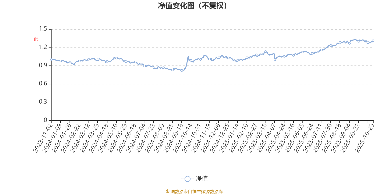 该基金属于偏股混合型基金。截至10月29日,单位净值为1.309元。基金经理是袁作栋,目前管理的8只基金近一年均为正收益。其中,截至10月29日,兴银碳中和主题混合A近一年复权单位净值增长率最高,达38.35%;兴银稳惠180天持有混合A最低,为8.53%。