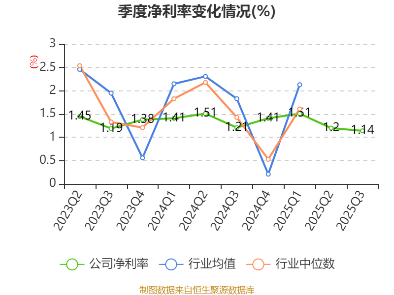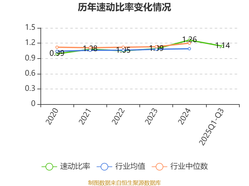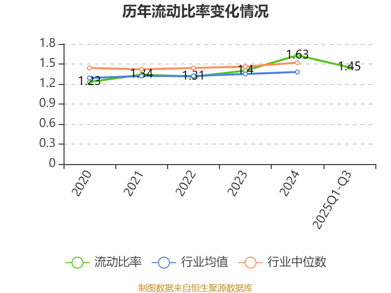 2025年前三季度,公司流动比率为1.45,速动比率为1.14。