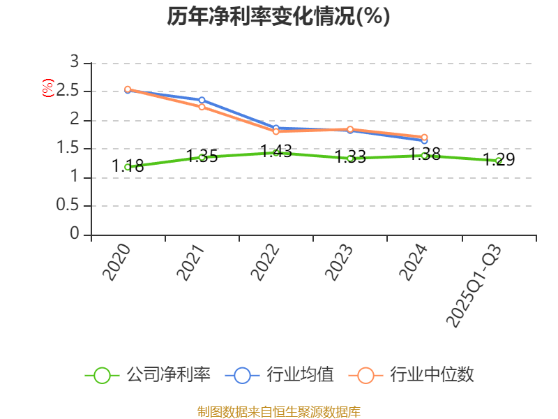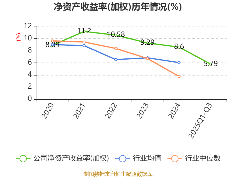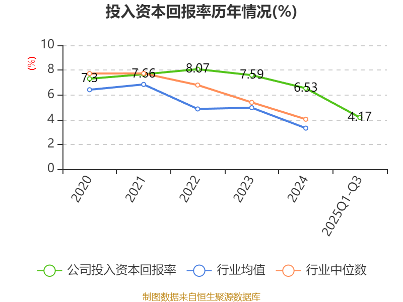 盈利能力方面, 2025年前三季度公司加权平均净资产收益率为5.79%,同比下降0.88个百分点。公司2025年前三季度投入资本回报率为4.17%,较上年同期下降0.66个百分点。