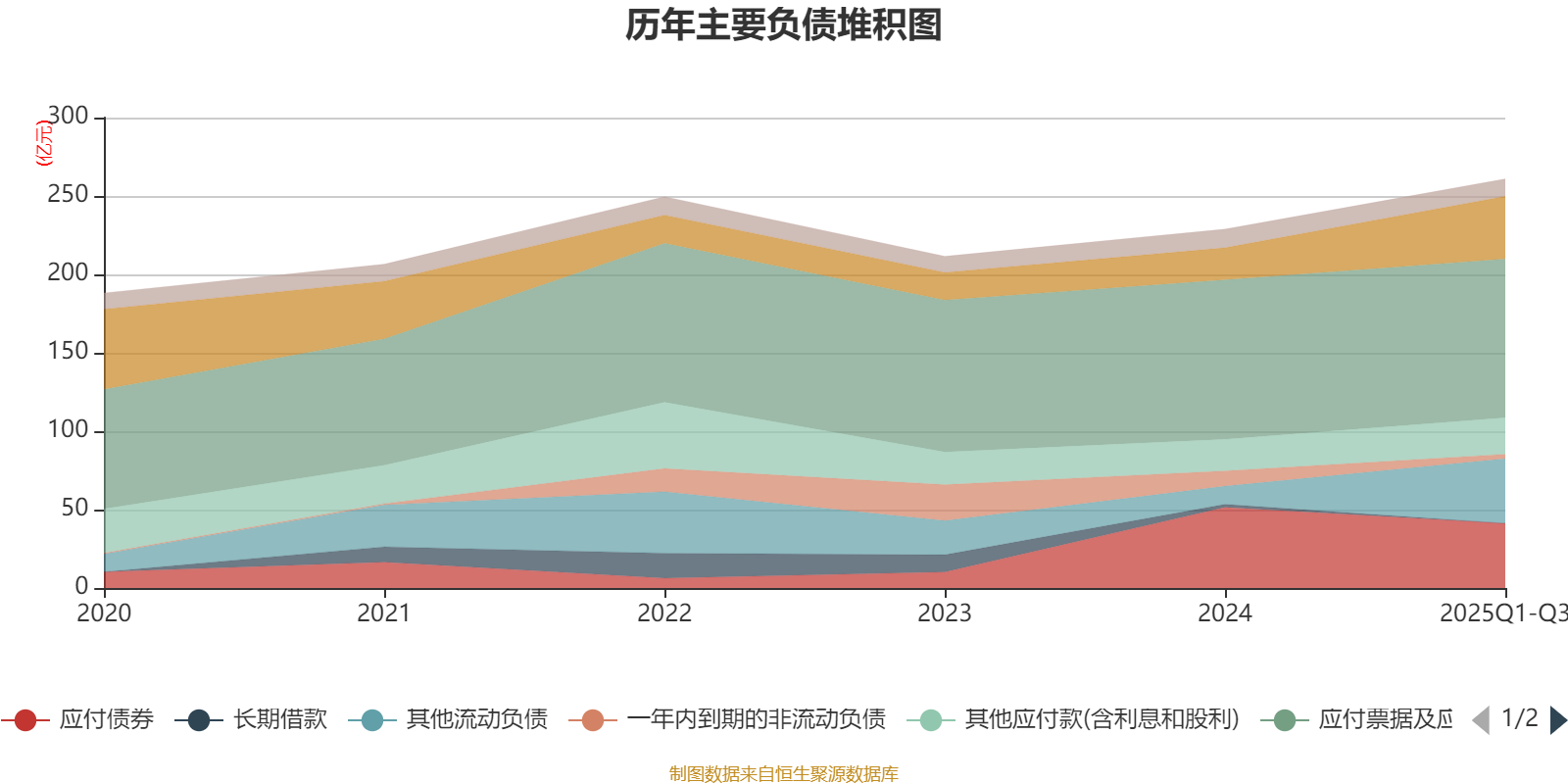 负债重大变化方面,截至2025年三季度末,公司其他流动负债较上年末增加258%,占公司总资产比重上升8.37个百分点;短期借款较上年末增加95.47%,占公司总资产比重上升5.07个百分点;应付债券较上年末减少19.82%,占公司总资产比重下降4.65个百分点;应付票据及应付账款较上年末减少0.4%,占公司总资产比重下降3.4个百分点。