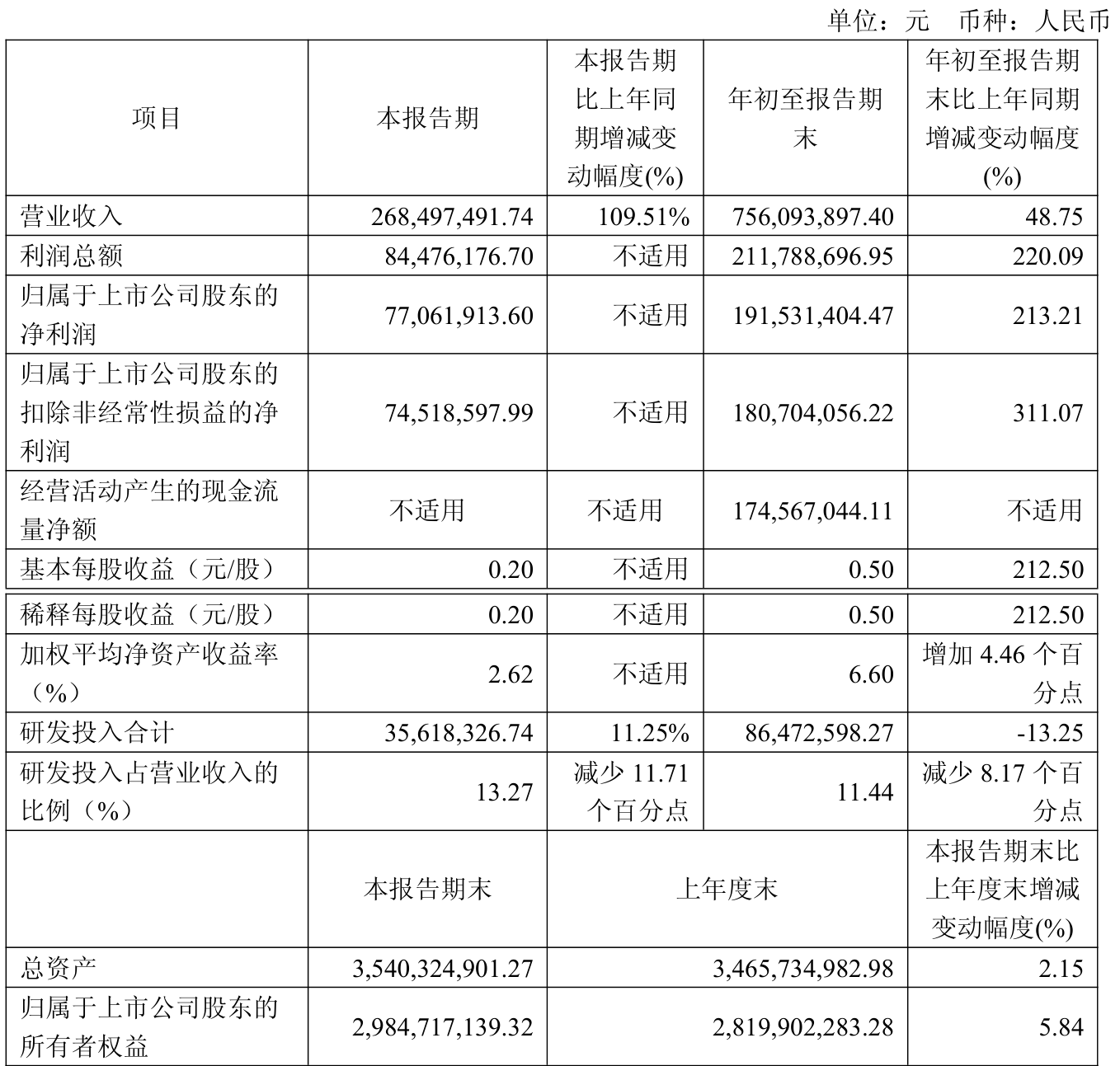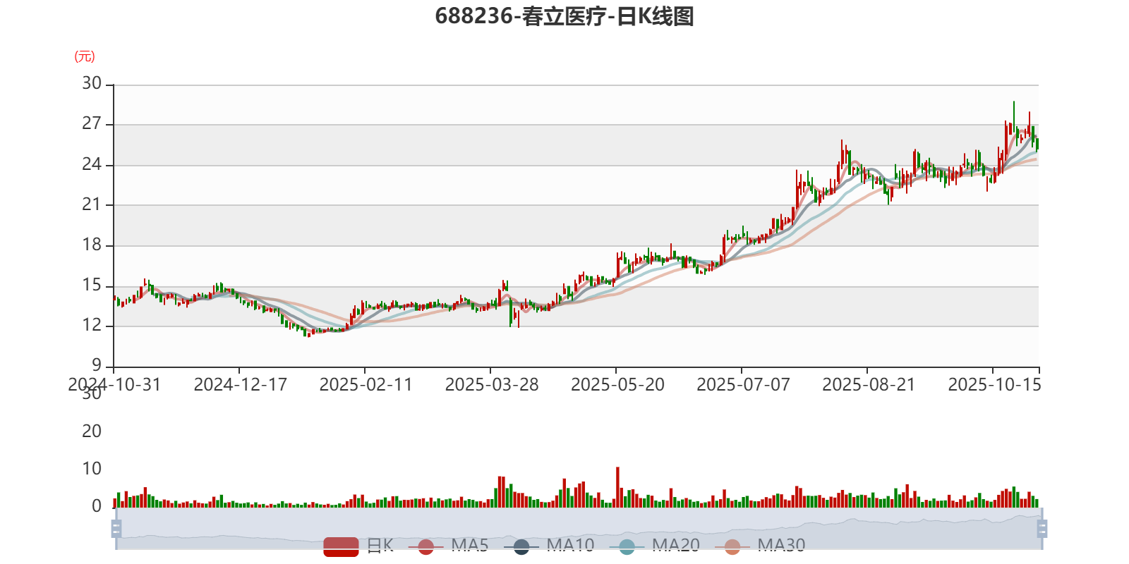 中证智能财讯春立医疗(688236)10月31日披露2025年第三季度报告。前三季度公司实现营业总收入7.56亿元,同比增长48.75%;归母净利润1.92亿元,同比增长213.21%;扣非净利润1.81亿元,同比增长311.07%;经营活动产生的现金流量净额为1.75亿元,上年同期为-1727.94万元;报告期内,春立医疗基本每股收益为0.5元,加权平均净资产收益率为6.60%。