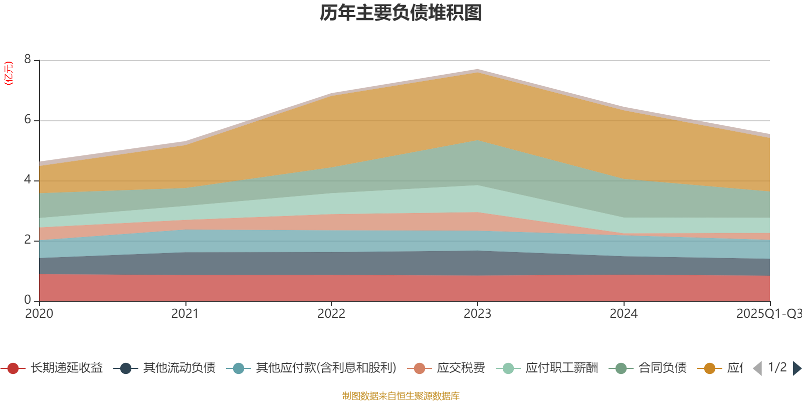 负债重大变化方面,截至2025年三季度末,公司应付票据及应付账款较上年末减少21.8%,占公司总资产比重下降1.54个百分点;合同负债较上年末减少31.99%,占公司总资产比重下降1.24个百分点;应交税费较上年末增加245.17%,占公司总资产比重上升0.46个百分点;其他应付款(含利息和股利)较上年末减少9.12%,占公司总资产比重下降0.22个百分点。