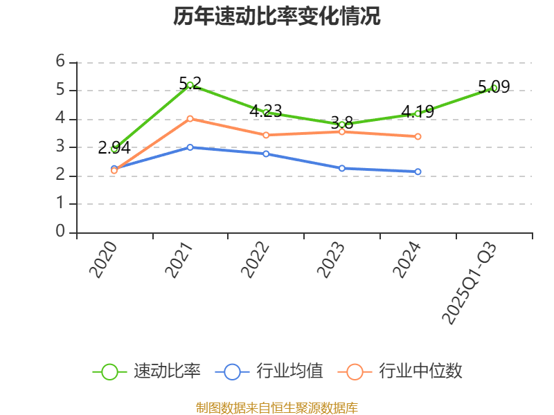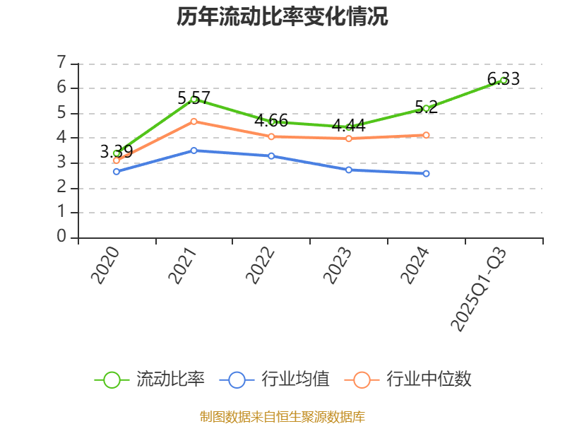 2025年前三季度,公司流动比率为6.33,速动比率为5.09。