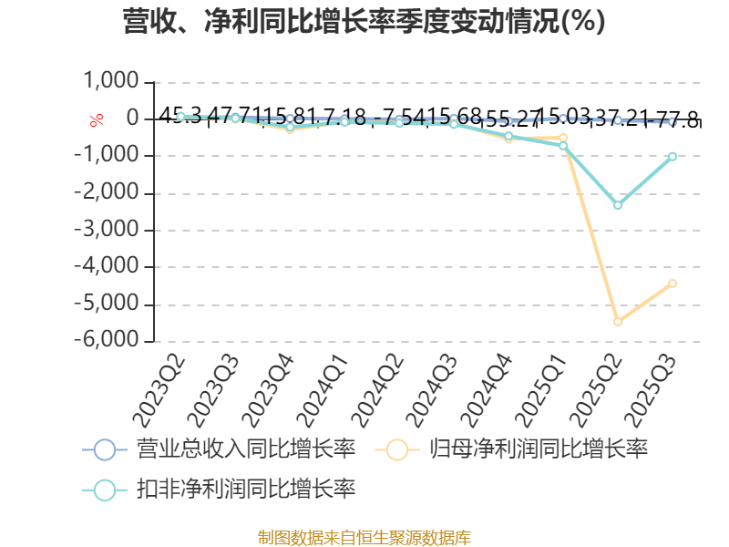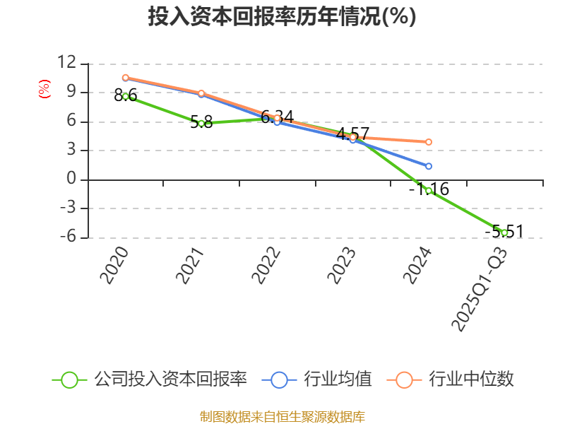 盈利能力方面, 2025年前三季度公司加权平均净资产收益率为-13.46%,同比下降13.82个百分点。公司2025年前三季度投入资本回报率为-5.51%,较上年同期下降6.73个百分点。