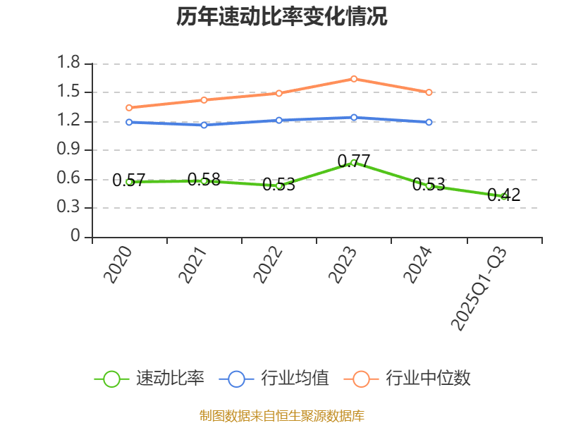 2025年前三季度,公司流动比率为1.21,速动比率为0.42。