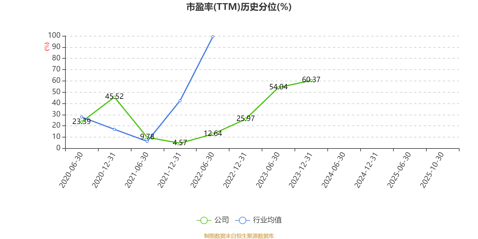 市盈率、市净率为负时,不显示当期分位数,会导致折线图中断。