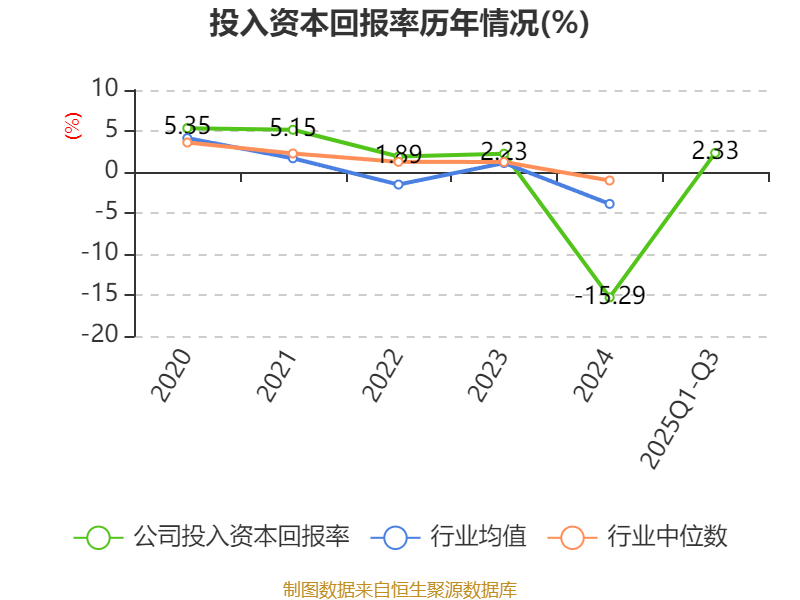 盈利能力方面, 2025年前三季度公司加权平均净资产收益率为3.21%,同比上升7.14个百分点。公司2025年前三季度投入资本回报率为2.33%,较上年同期上升2.65个百分点。