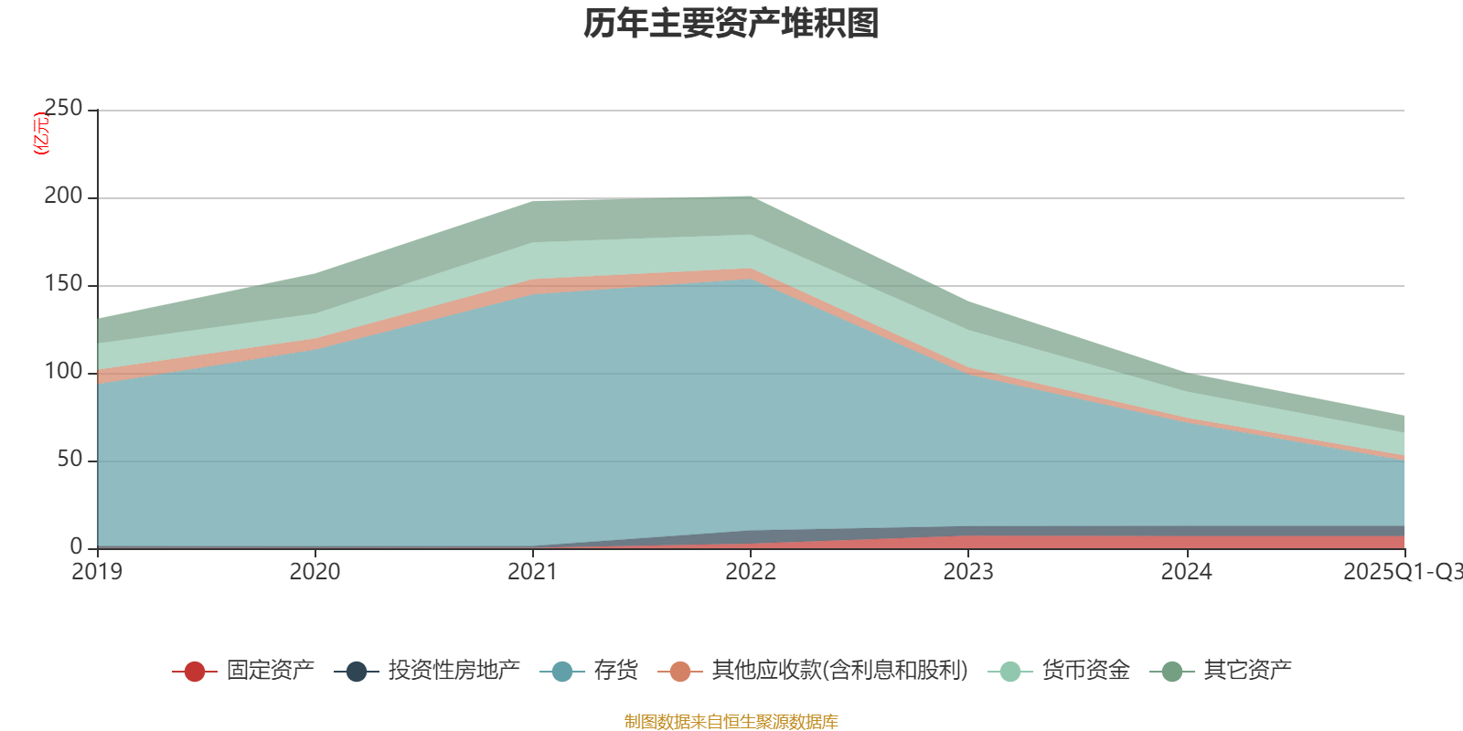 资产重大变化方面,截至2025年三季度末,公司存货较上年末减少36.71%,占公司总资产比重下降9.59个百分点;固定资产较上年末增加0.13%,占公司总资产比重上升2.26个百分点;货币资金较上年末减少13.41%,占公司总资产比重上升2.19个百分点;投资性房地产较上年末减少0.07%,占公司总资产比重上升1.88个百分点。