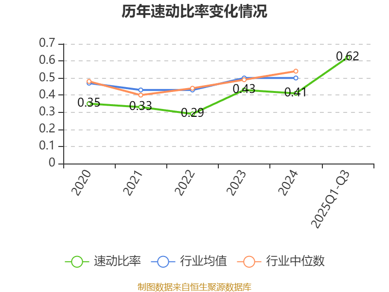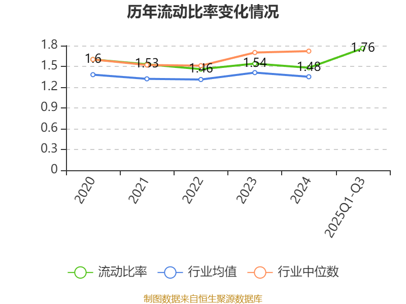 2025年前三季度,公司流动比率为1.76,速动比率为0.62。