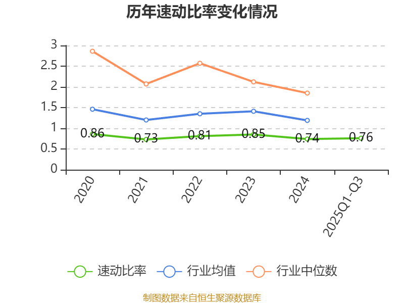 2025年前三季度,公司流动比率为0.96,速动比率为0.76。