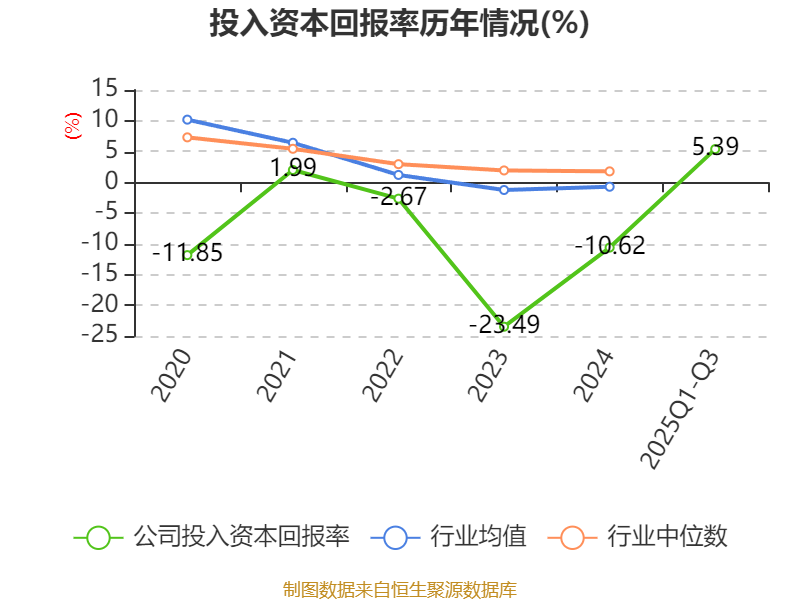 盈利能力方面, 2025年前三季度公司加权平均净资产收益率为8.51%,同比上升6.71个百分点。公司2025年前三季度投入资本回报率为5.39%,较上年同期上升3.35个百分点。