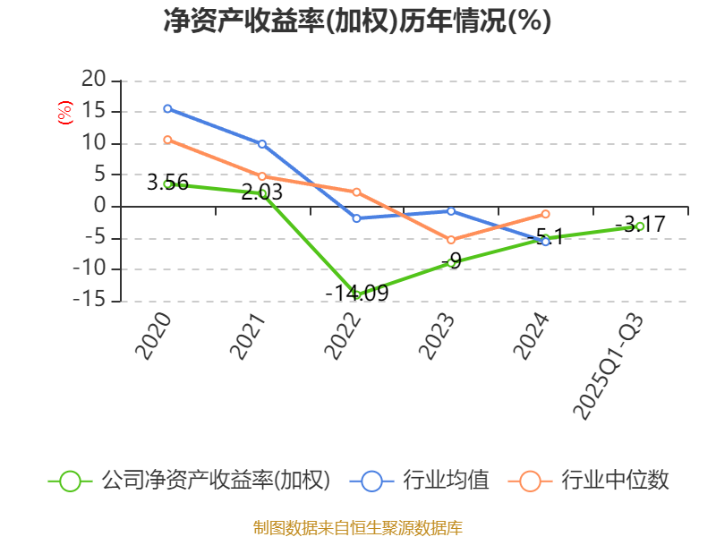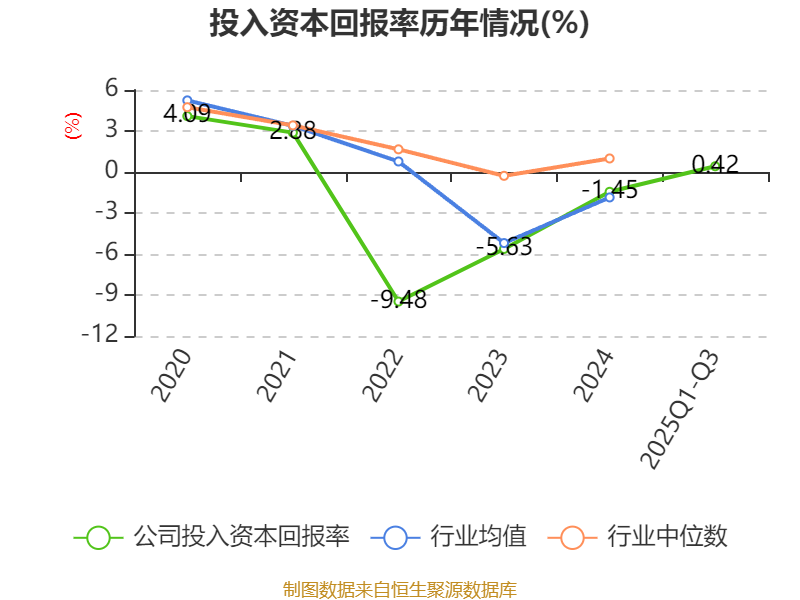 盈利能力方面, 2025年前三季度公司加权平均净资产收益率为-3.17%,同比下降2.35个百分点。公司2025年前三季度投入资本回报率为0.42%,较上年同期上升1.7个百分点。