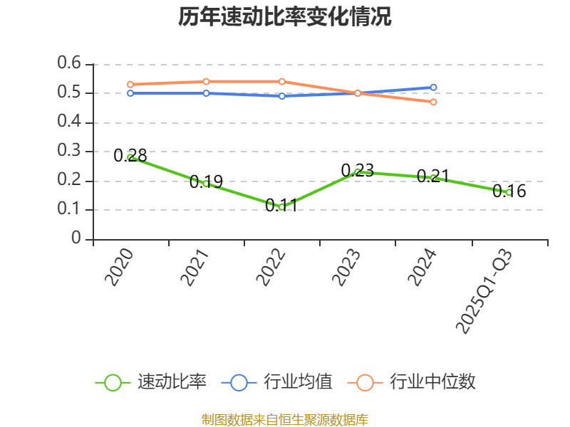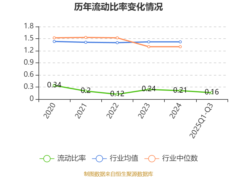 2025年前三季度,公司流动比率为0.16,速动比率为0.16。