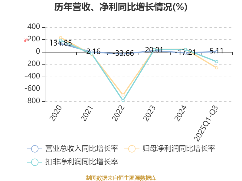 负债重大变化方面,截至2025年三季度末,公司长期借款较上年末减少17.03%,占公司总资产比重下降0.99个百分点;递延所得税负债较上年末增加4.38%,占公司总资产比重上升0.59个百分点;其他应付款(含利息和股利)较上年末减少7.09%,占公司总资产比重下降0.36个百分点;合同负债较上年末增加577.46%,占公司总资产比重上升0.35个百分点。