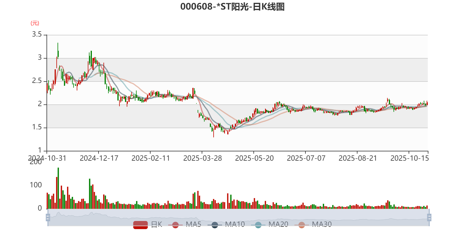 以10月30日收盘价计算,*ST阳光目前市盈率(TTM)约为-8.45倍,市净率(LF)约0.69倍,市销率(TTM)约4.03倍。