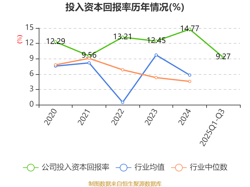 盈利能力方面, 2025年前三季度公司加权平均净资产收益率为11.65%,同比下降2.68个百分点。公司2025年前三季度投入资本回报率为9.27%,较上年同期下降2.24个百分点。
