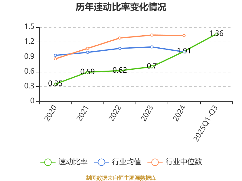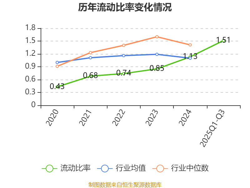 2025年前三季度,公司流动比率为1.51,速动比率为1.36。