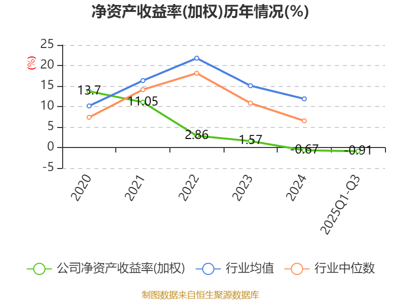 盈利能力方面, 2025年前三季度公司加权平均净资产收益率为-0.91%,同比下降0.54个百分点。公司2025年前三季度投入资本回报率为-0.66%,较上年同期下降0.89个百分点。