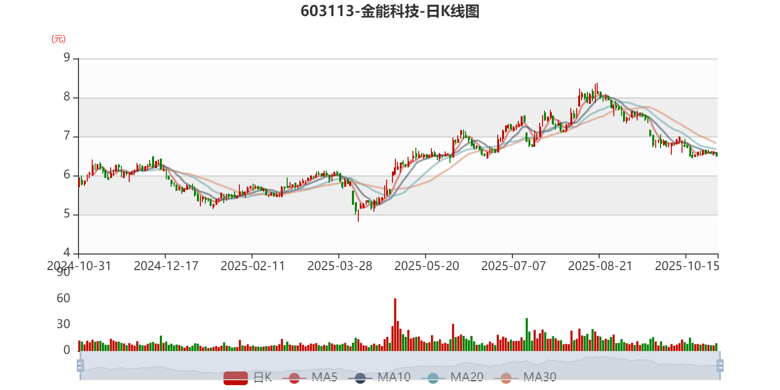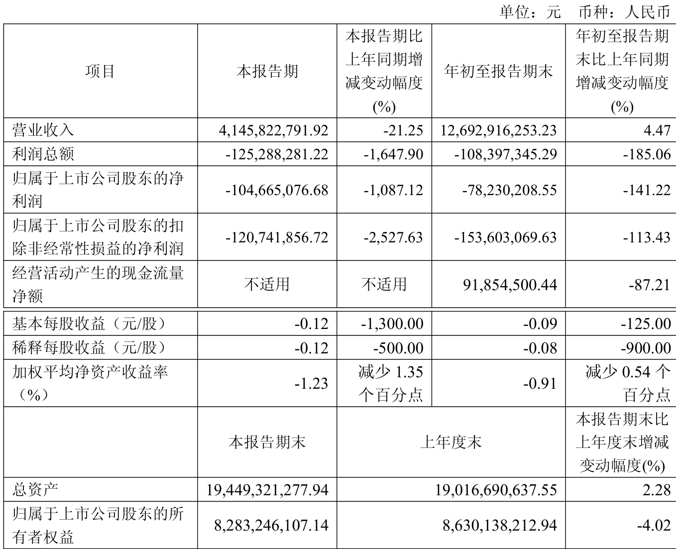 中证智能财讯金能科技(603113)10月31日披露2025年第三季度报告。前三季度公司实现营业总收入126.93亿元,同比增长4.47%;归母净利润亏损7823.02万元,上年同期亏损3243.04万元;扣非净利润亏损1.54亿元,上年同期亏损7196.99万元;经营活动产生的现金流量净额为9185.45万元,同比下降87.21%;报告期内,金能科技基本每股收益为-0.09元,加权平均净资产收益率为-0.91%。