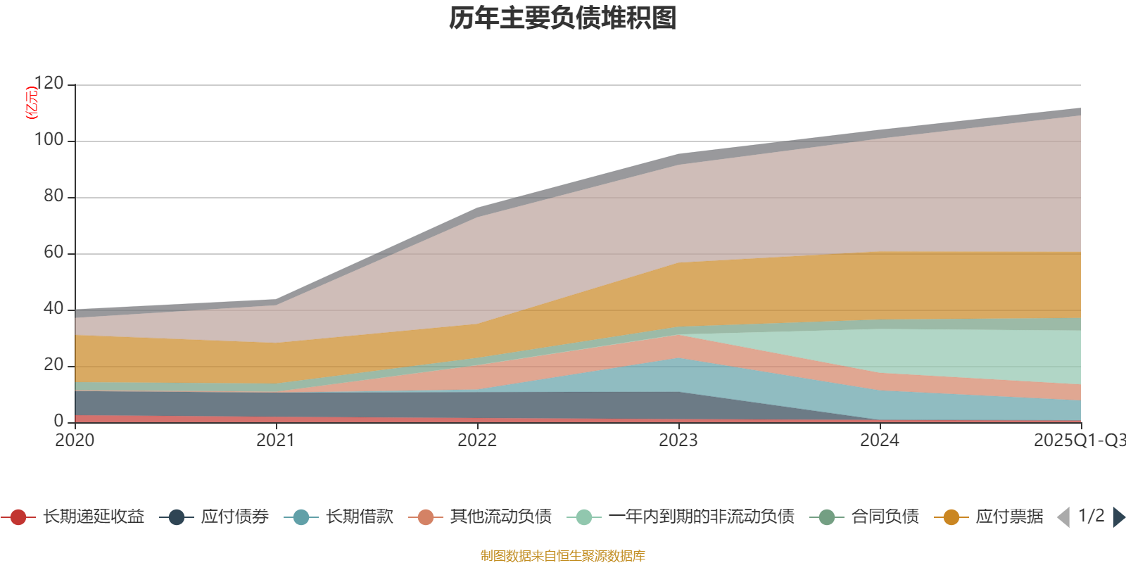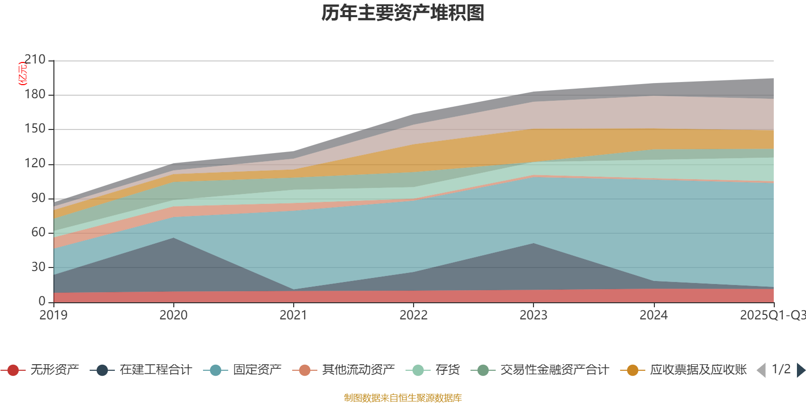 资产重大变化方面,截至2025年三季度末,公司在建工程合计较上年末减少73.86%,占公司总资产比重下降2.63个百分点;预付款项较上年末增加161.54%,占公司总资产比重上升2.5个百分点;存货较上年末增加27.86%,占公司总资产比重上升2.12个百分点;应收票据及应收账款较上年末减少11.81%,占公司总资产比重下降1.32个百分点。