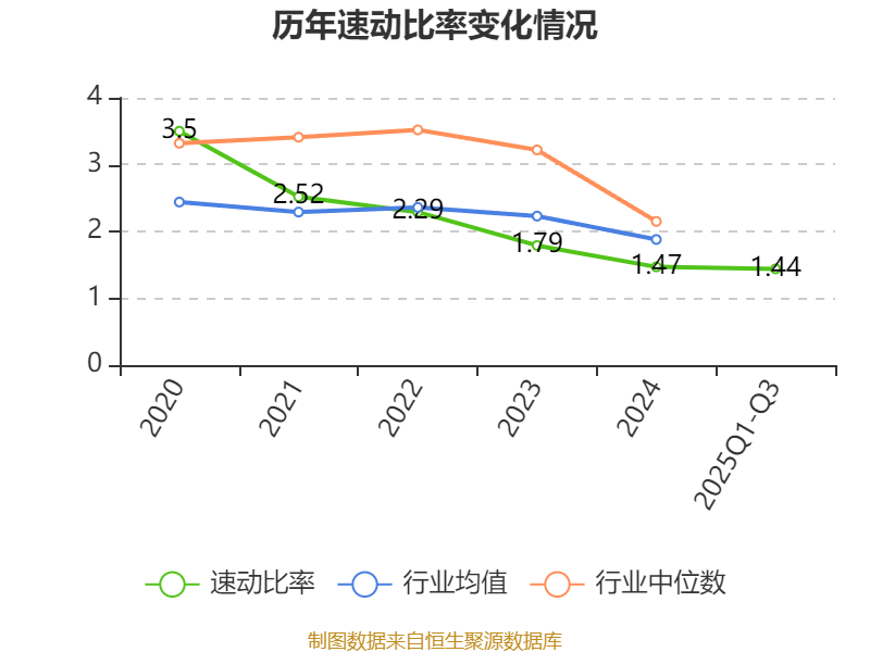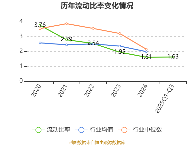 2025年前三季度,公司流动比率为1.63,速动比率为1.44。