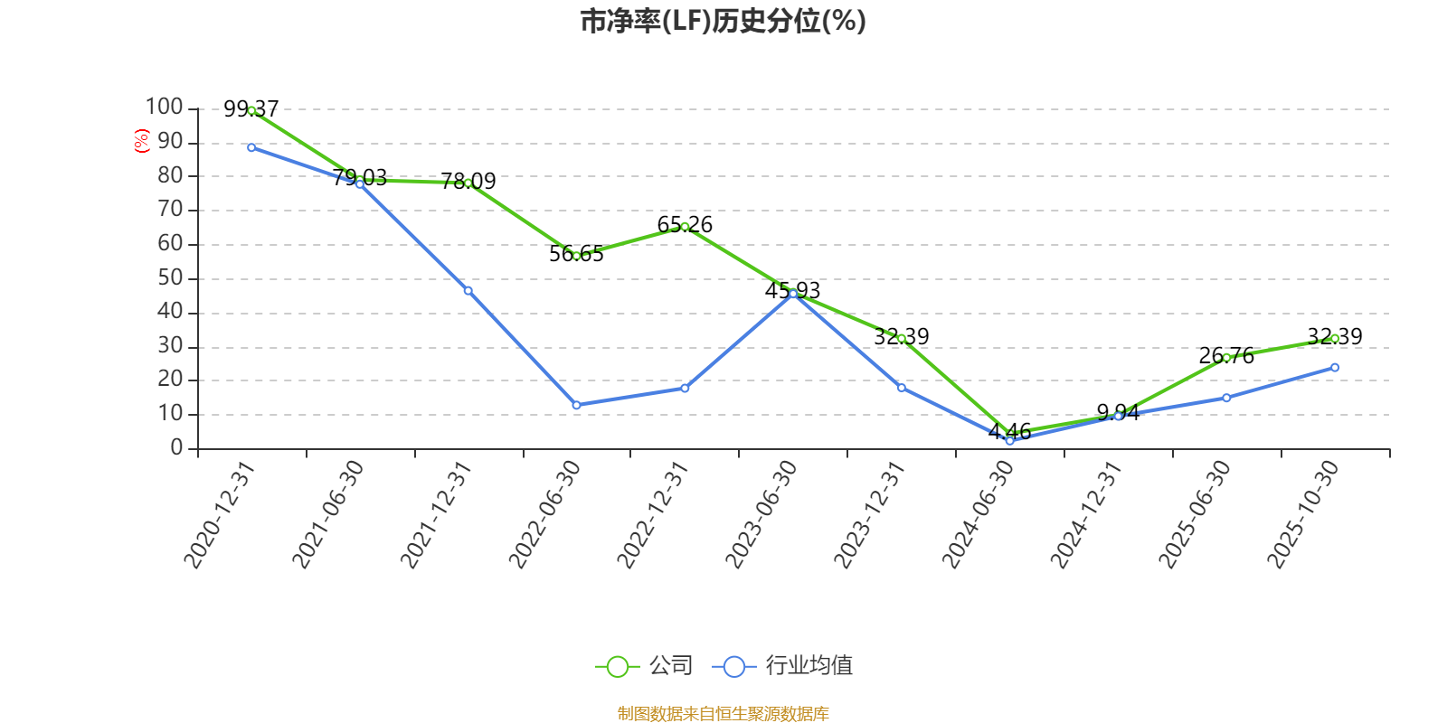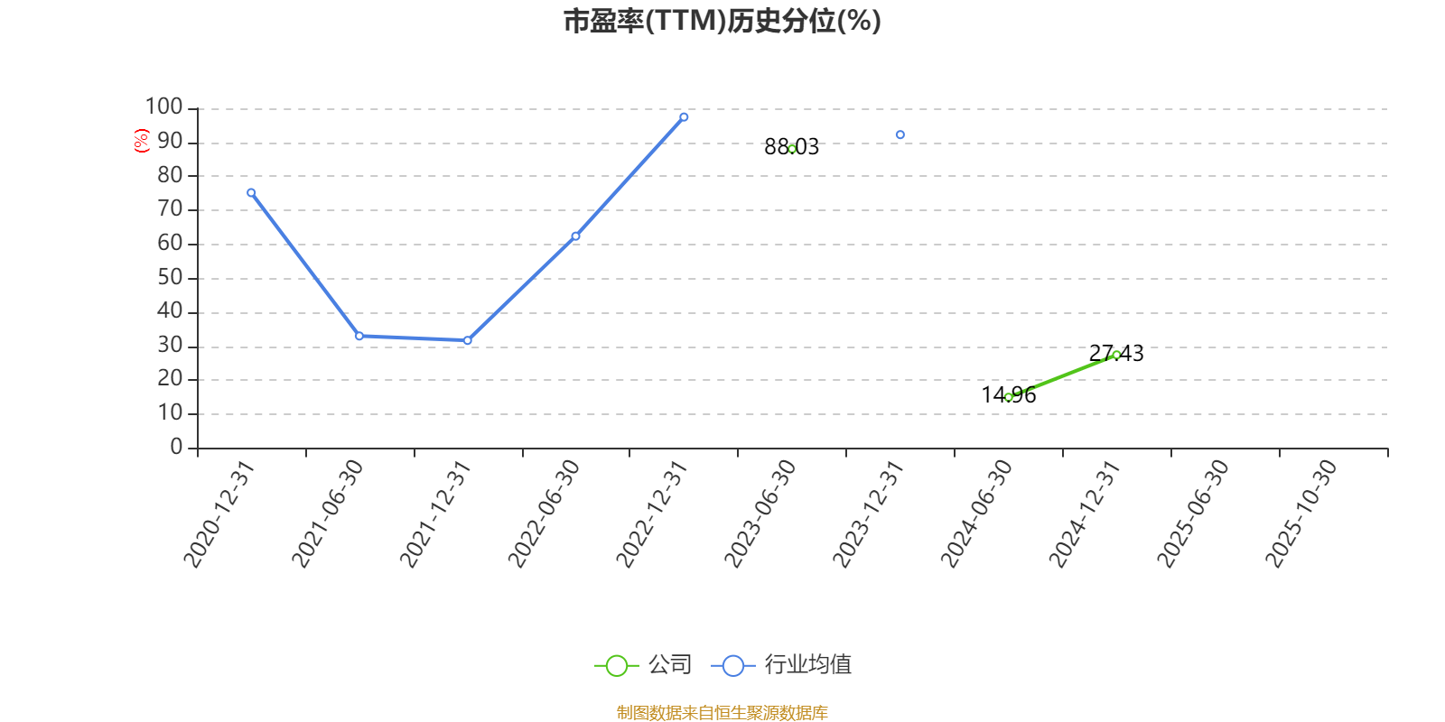 市盈率、市净率为负时,不显示当期分位数,会导致折线图中断。