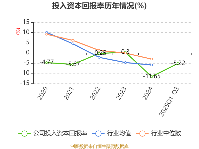 盈利能力方面, 2025年前三季度公司加权平均净资产收益率为-7.3%,同比上升4.97个百分点。公司2025年前三季度投入资本回报率为-5.22%,较上年同期上升4.4个百分点。