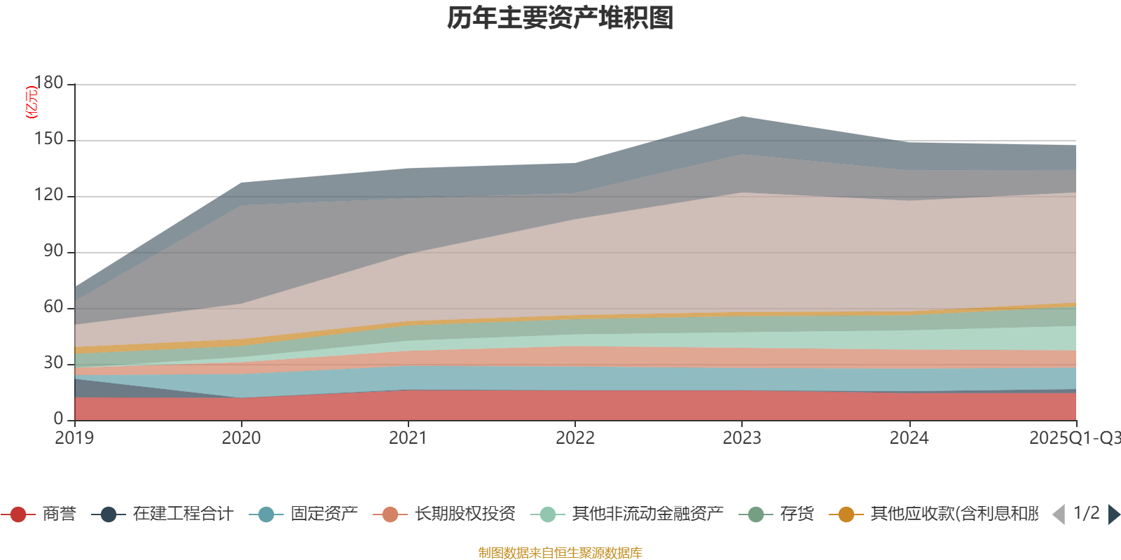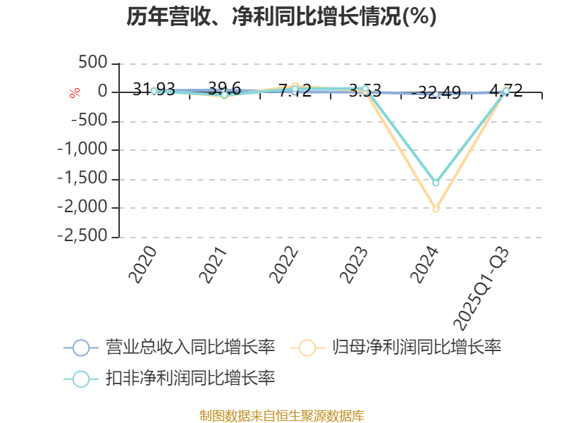 资产重大变化方面,截至2025年三季度末,公司货币资金较上年末减少25.6%,占公司总资产比重下降2.72个百分点;其他非流动金融资产较上年末增加27.17%,占公司总资产比重上升1.97个百分点;存货较上年末增加28.89%,占公司总资产比重上升1.63个百分点;使用权资产较上年末减少45.79%,占公司总资产比重下降0.85个百分点。