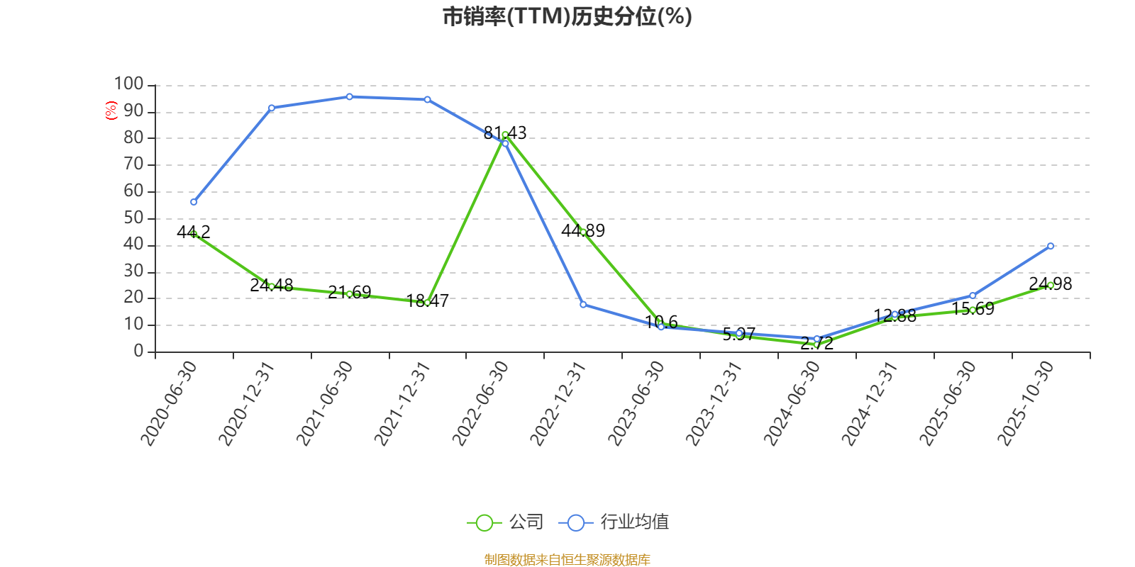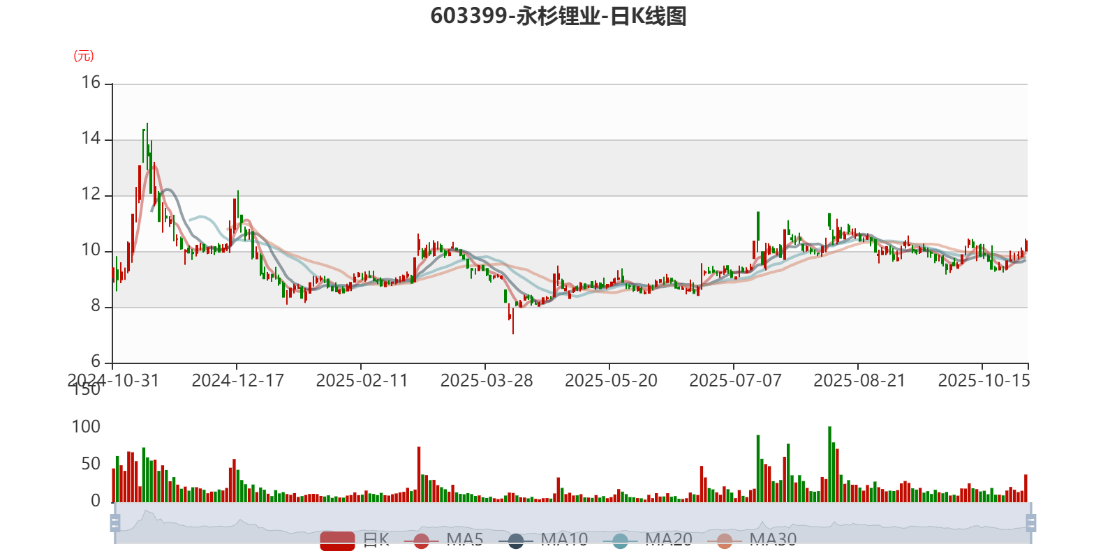 以10月30日收盘价计算,永杉锂业目前市盈率(TTM)约为-28.15倍,市净率(LF)约3.2倍,市销率(TTM)约1.04倍。
