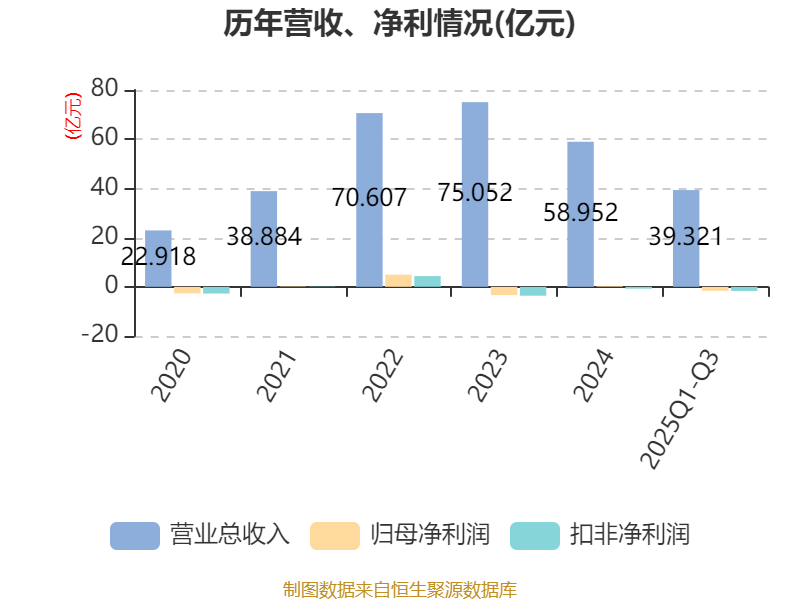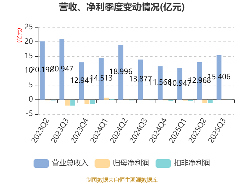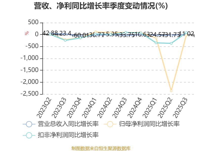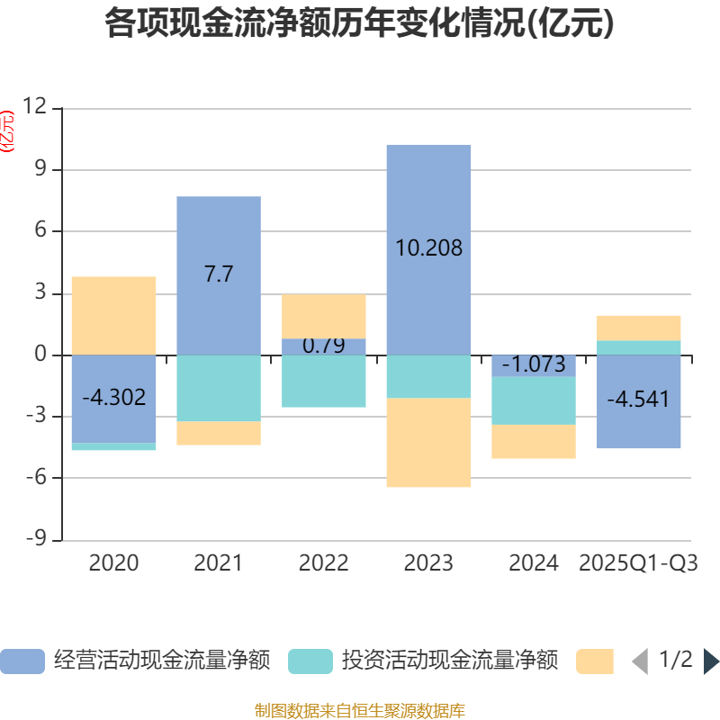 2025年前三季度,公司经营活动现金流净额为-4.54亿元,同比减少5.39亿元;筹资活动现金流净额1.2亿元,同比增加3.56亿元;投资活动现金流净额7012.85万元,上年同期为-4.25亿元。