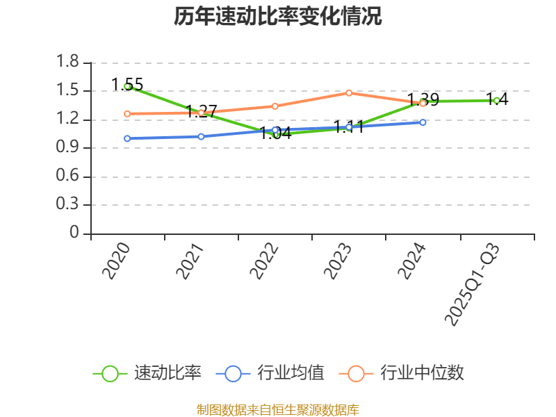 2025年前三季度,公司流动比率为2.04,速动比率为1.4。