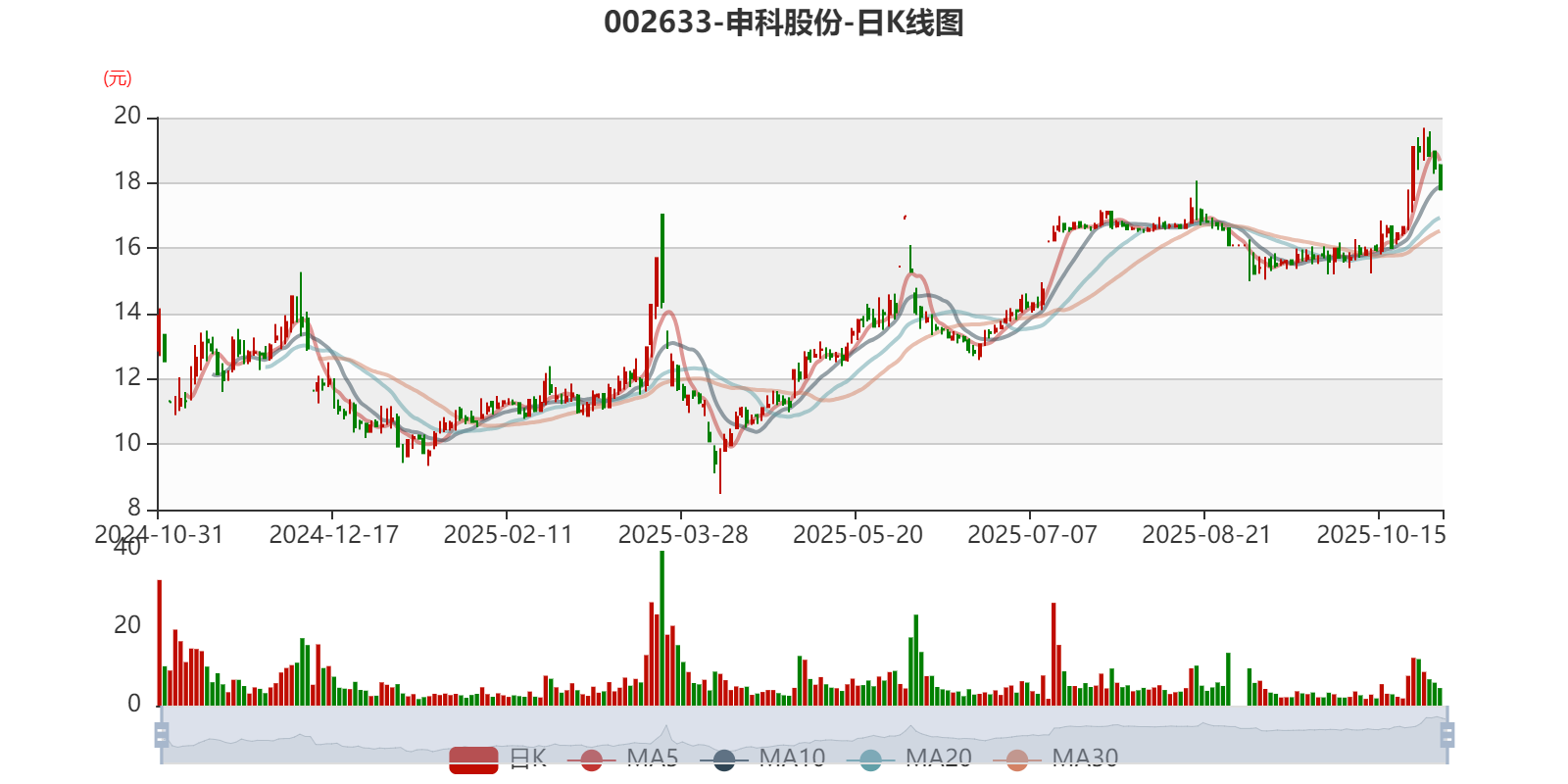 以10月30日收盘价计算,申科股份目前市盈率(TTM)约为445.63倍,市净率(LF)约6.27倍,市销率(TTM)约8.5倍。