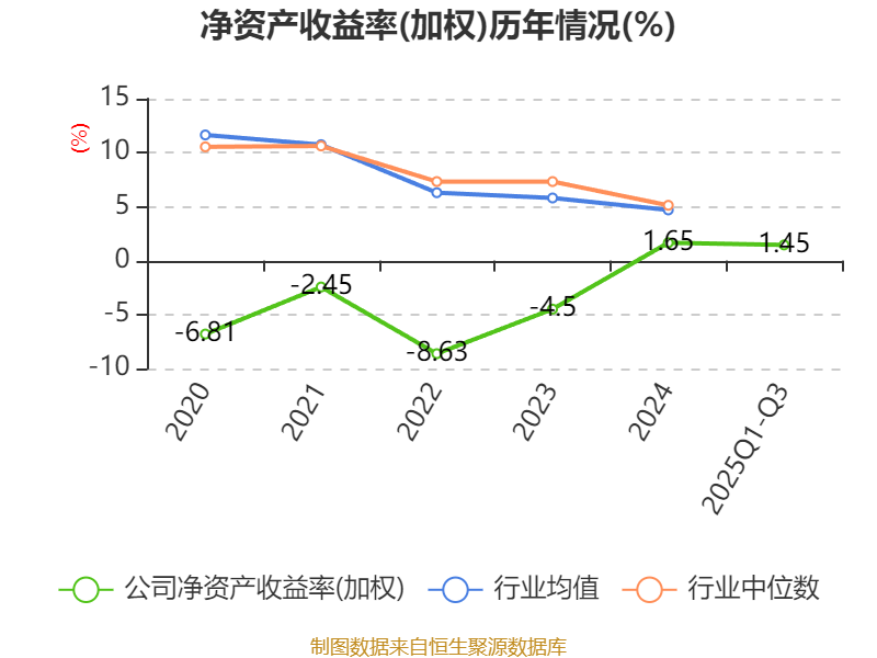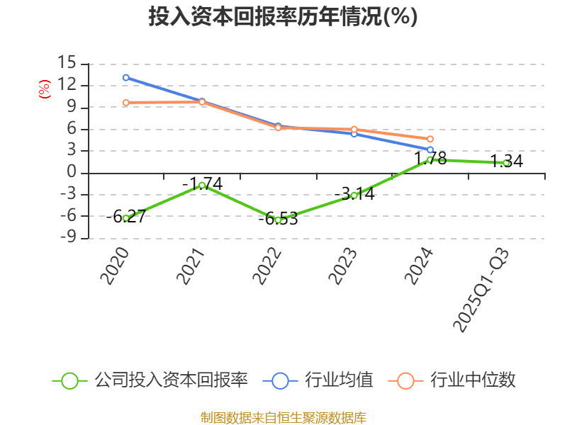 盈利能力方面, 2025年前三季度公司加权平均净资产收益率为1.45%,同比下降0.24个百分点。公司2025年前三季度投入资本回报率为1.34%,较上年同期下降0.18个百分点。