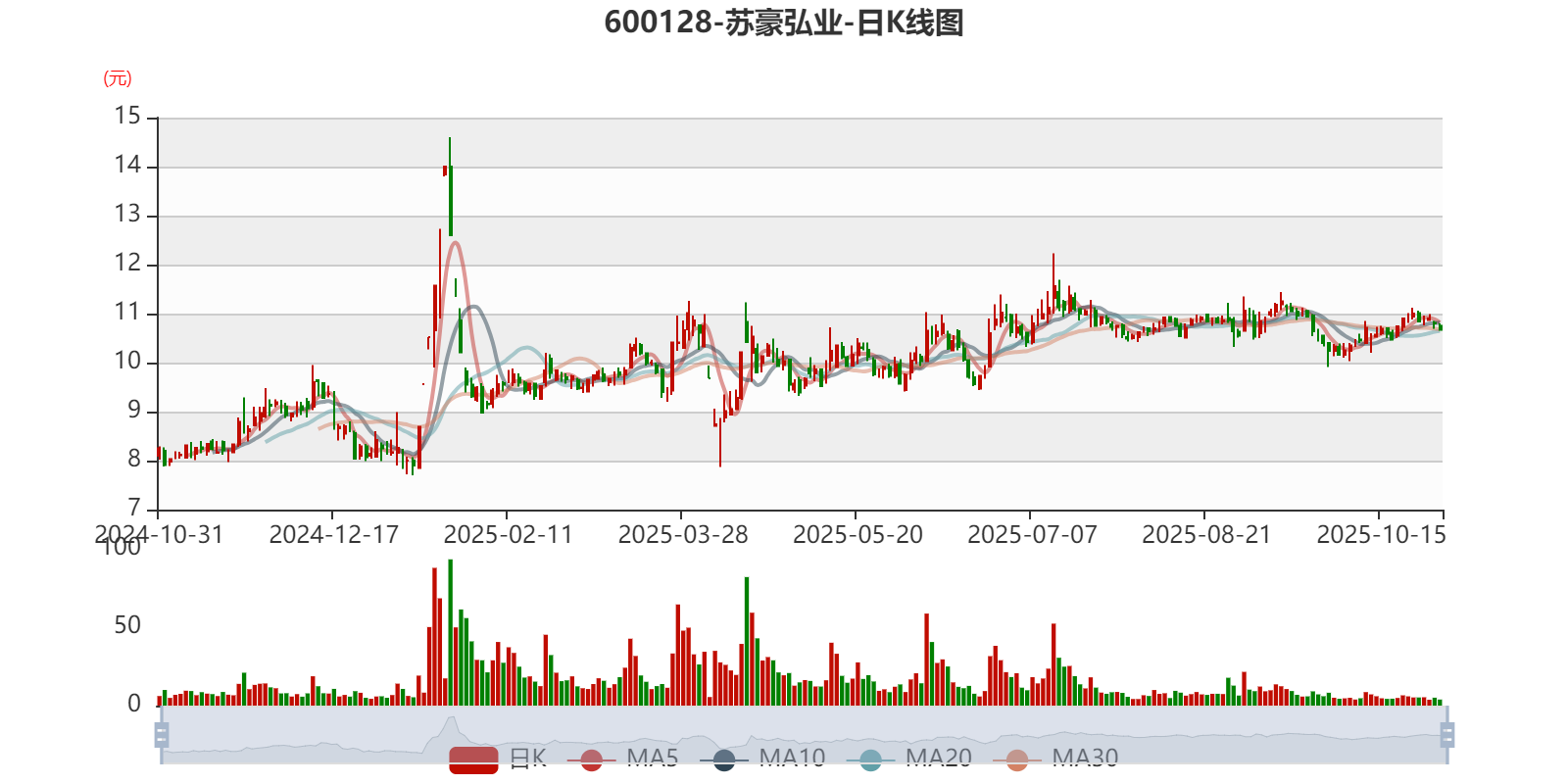 中证智能财讯苏豪弘业(600128)10月31日披露2025年第三季度报告。前三季度公司实现营业总收入59.91亿元,同比增长10.77%;归母净利润4971.93万元,同比增长36.42%;扣非净利润1870.3万元,同比增长116.27%;经营活动产生的现金流量净额为-1.54亿元,上年同期为-6.4亿元;报告期内,苏豪弘业基本每股收益为0.2015元,加权平均净资产收益率为2.33%。