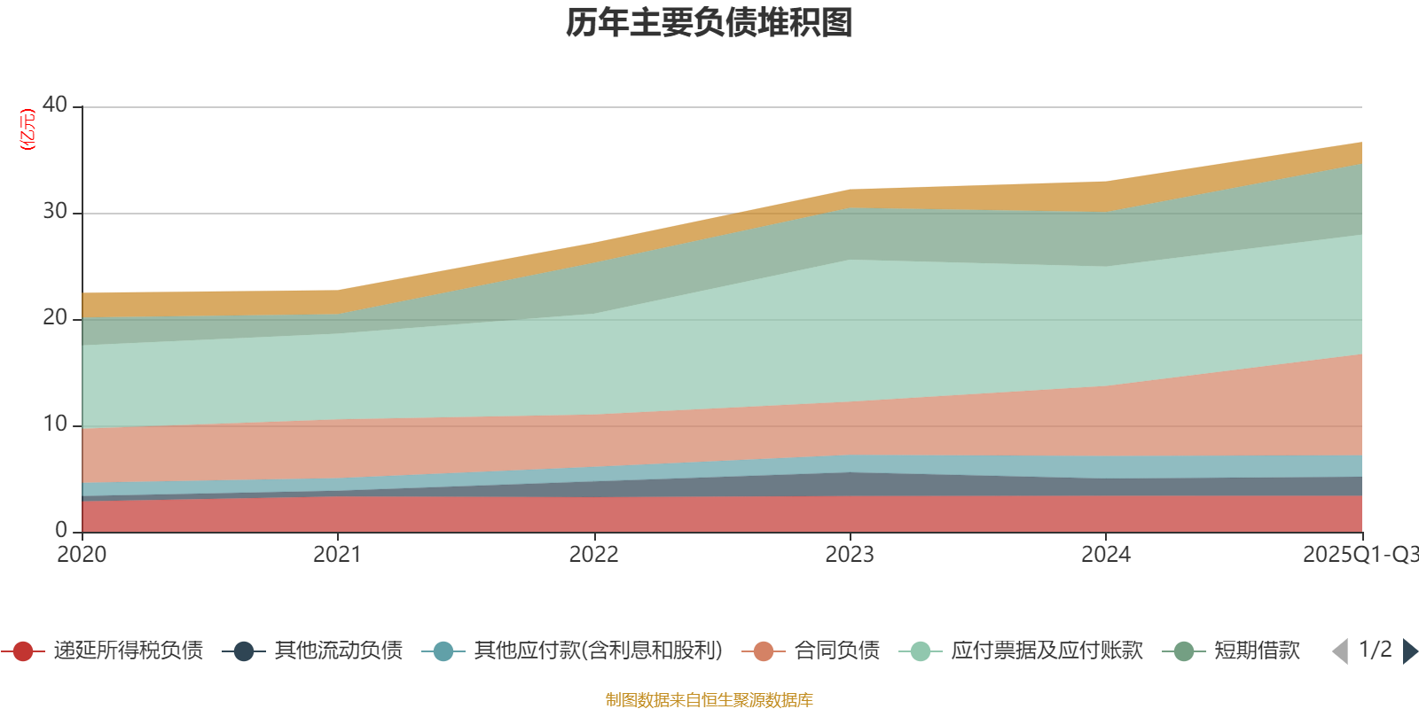 负债重大变化方面,截至2025年三季度末,公司合同负债较上年末增加44.45%,占公司总资产比重上升3.85个百分点;短期借款较上年末增加29.92%,占公司总资产比重上升1.84个百分点;应付票据及应付账款较上年末增加0.13%,占公司总资产比重下降1.18个百分点;应交税费较上年末减少44.72%,占公司总资产比重下降0.6个百分点。