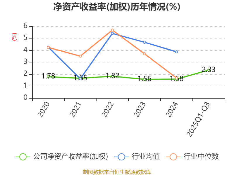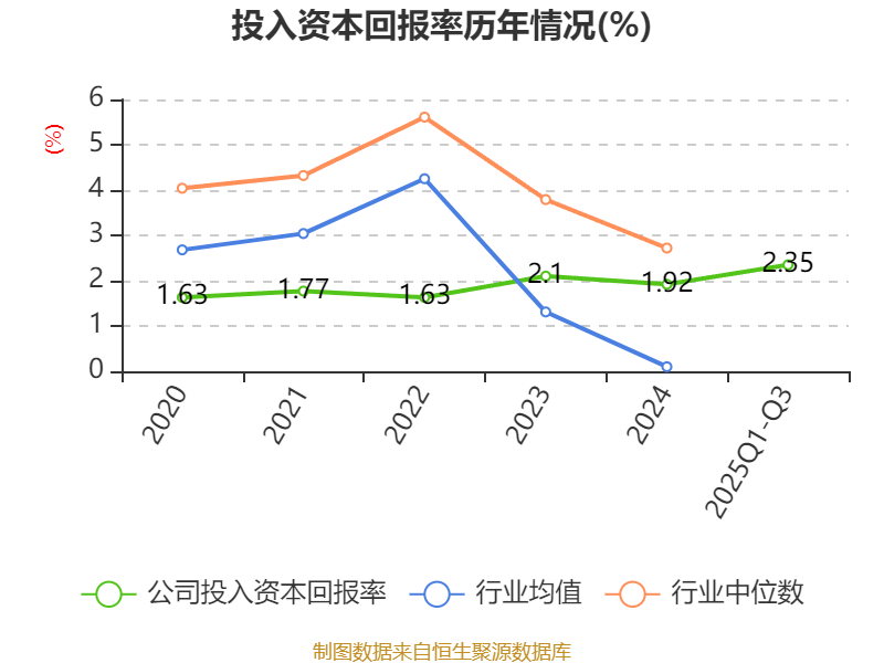 盈利能力方面, 2025年前三季度公司加权平均净资产收益率为2.33%,同比上升0.61个百分点。公司2025年前三季度投入资本回报率为2.35%,较上年同期上升0.51个百分点。