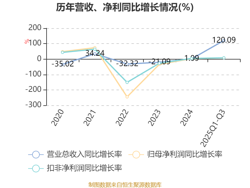 资产重大变化方面,截至2025年三季度末,公司应收票据及应收账款较上年末增加165.09%,占公司总资产比重上升11.13个百分点;货币资金较上年末减少54.96%,占公司总资产比重下降8.42个百分点;长期股权投资较上年末减少11.95%,占公司总资产比重下降1.18个百分点;固定资产较上年末减少3.32%,占公司总资产比重下降0.64个百分点。