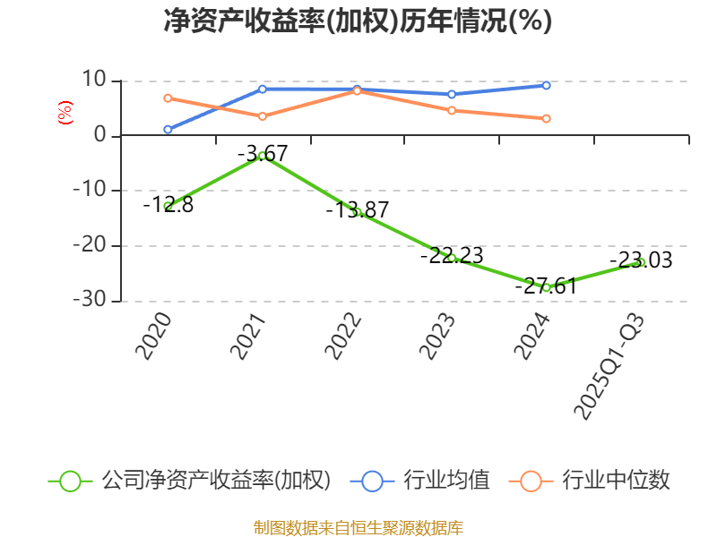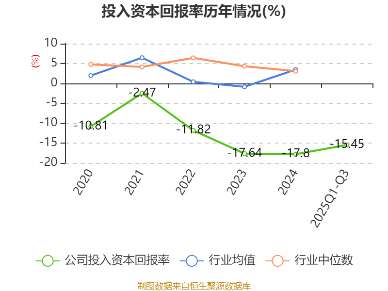盈利能力方面, 2025年前三季度公司加权平均净资产收益率为-23.03%,同比下降4.54个百分点。公司2025年前三季度投入资本回报率为-15.45%,较上年同期下降1.91个百分点。