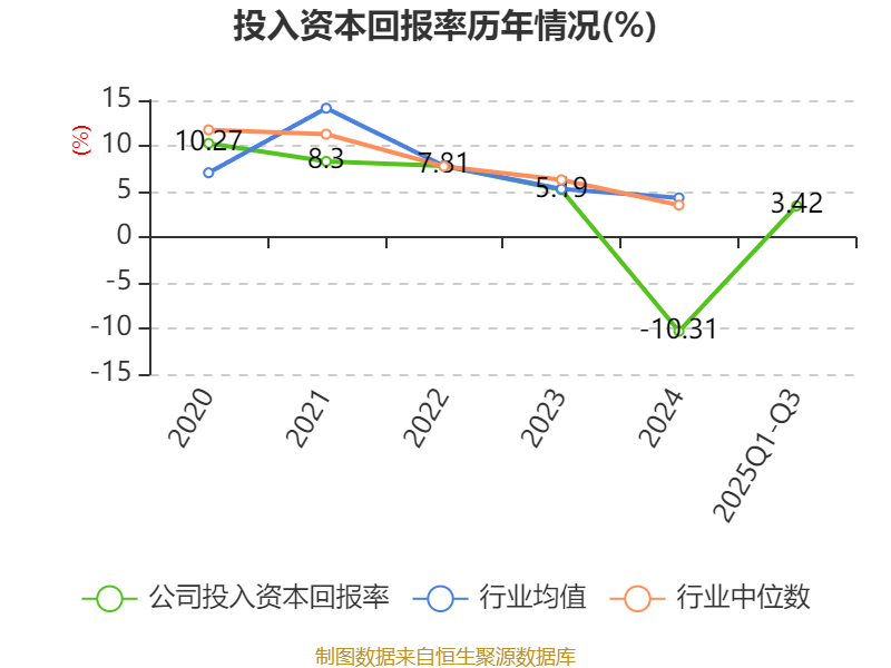 盈利能力方面, 2025年前三季度公司加权平均净资产收益率为4.34%,同比上升5.65个百分点。公司2025年前三季度投入资本回报率为3.42%,较上年同期上升4.33个百分点。