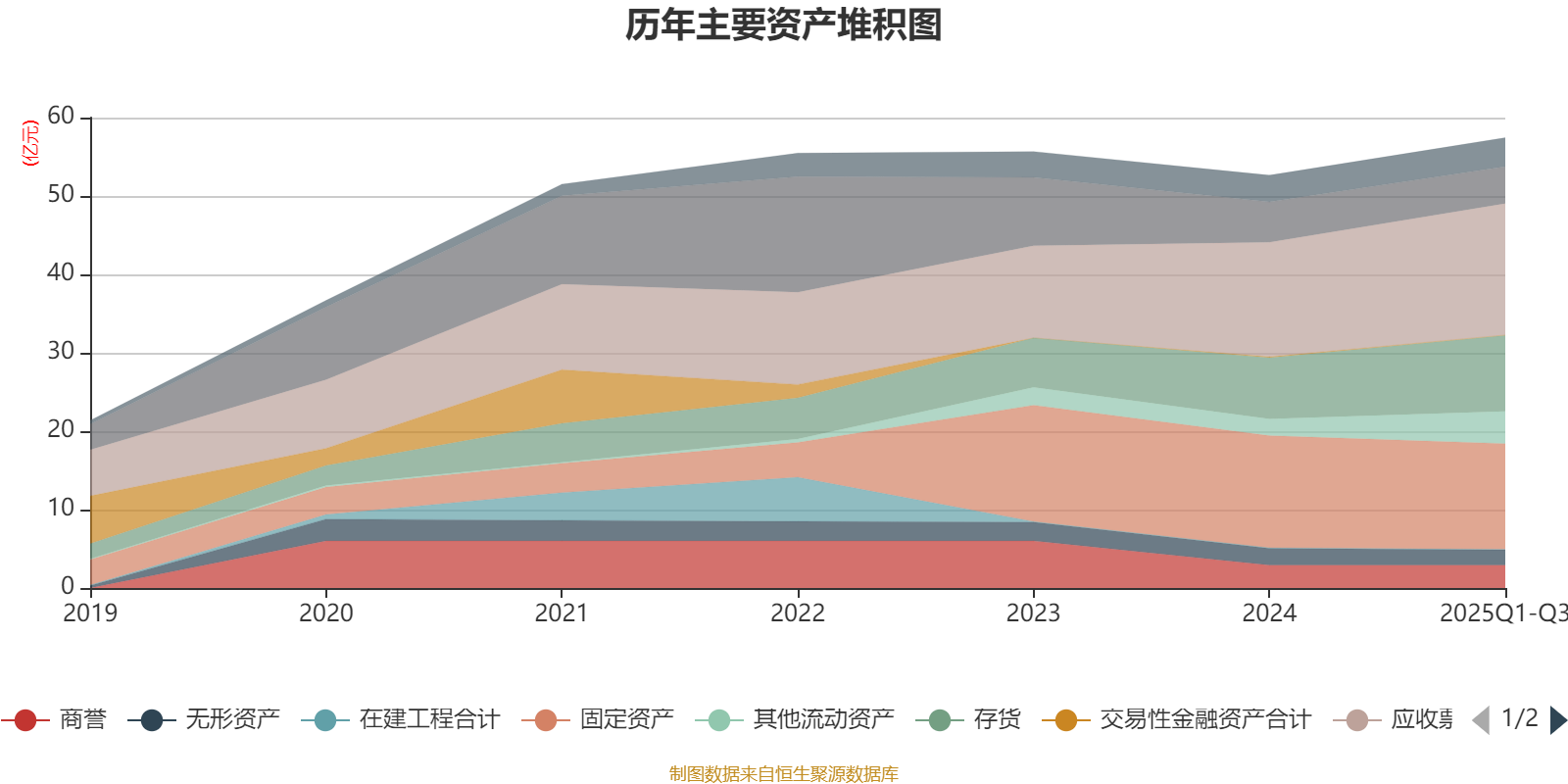 资产重大变化方面,截至2025年三季度末,公司固定资产较上年末减少5.8%,占公司总资产比重下降3.71个百分点;其他流动资产较上年末增加92.72%,占公司总资产比重上升3.1个百分点;存货较上年末增加23.65%,占公司总资产比重上升1.99个百分点;货币资金较上年末减少8.62%,占公司总资产比重下降1.59个百分点。