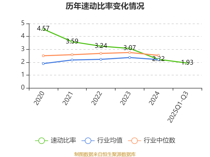 2025年前三季度,公司流动比率为2.62,速动比率为1.93。