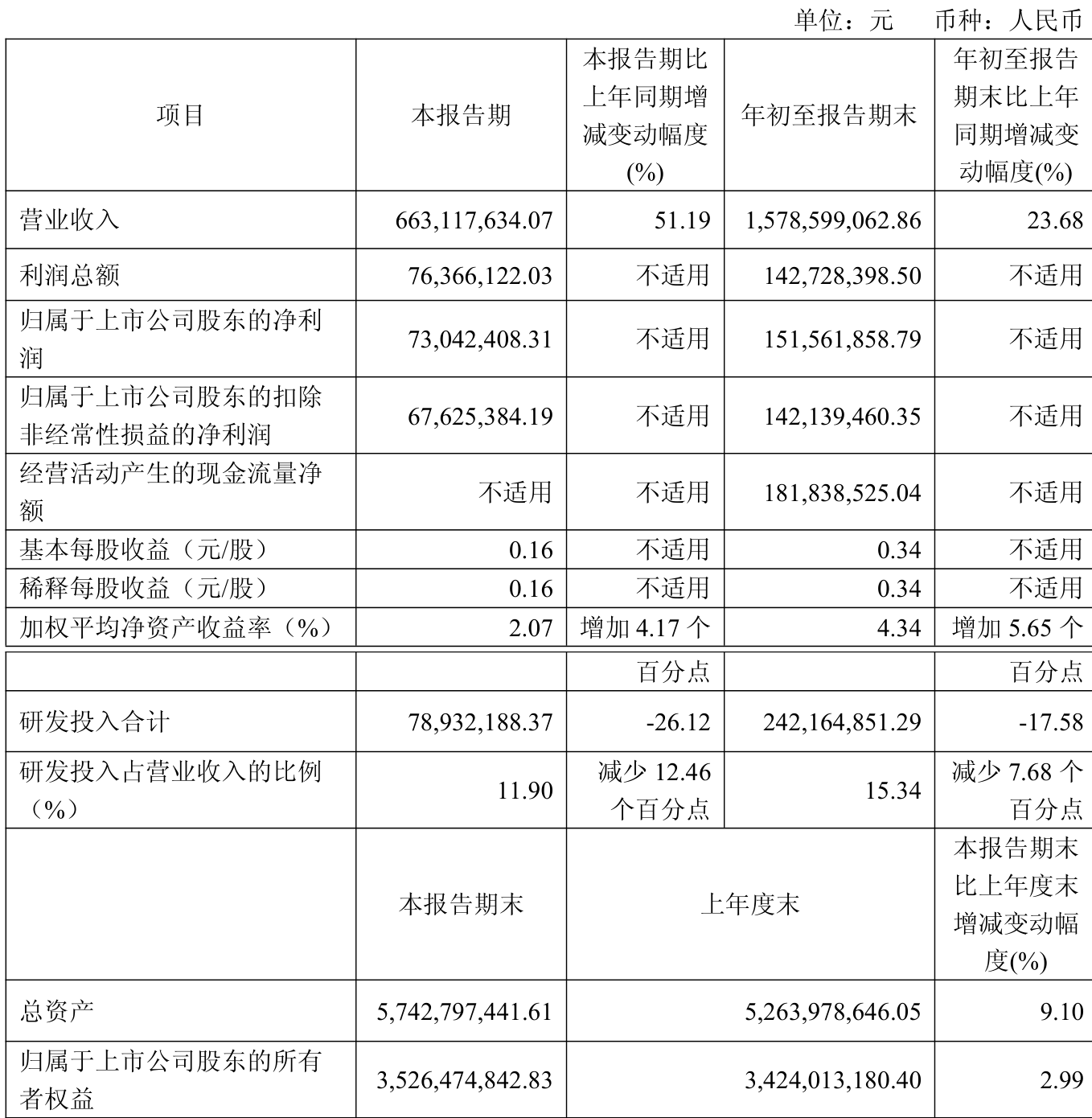 中证智能财讯华兴源创(688001)10月31日披露2025年第三季度报告。前三季度公司实现营业总收入15.79亿元,同比增长23.68%;归母净利润1.52亿元,同比扭亏;扣非净利润1.42亿元,同比扭亏;经营活动产生的现金流量净额为1.82亿元,上年同期为-2.41亿元;报告期内,华兴源创基本每股收益为0.34元,加权平均净资产收益率为4.34%。