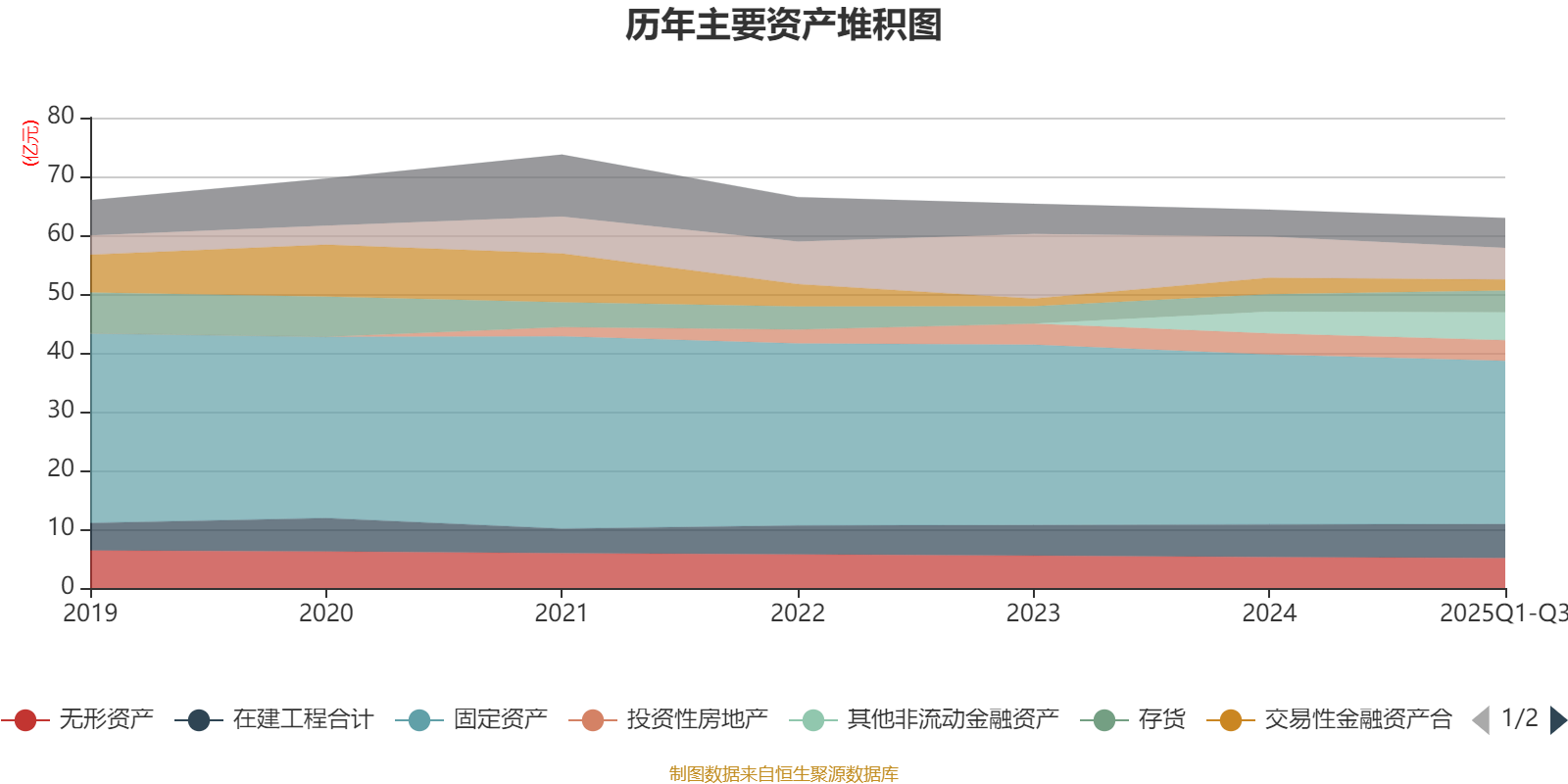 资产重大变化方面,截至2025年三季度末,公司货币资金较上年末减少22.93%,占公司总资产比重下降2.31个百分点;其他非流动金融资产较上年末增加27.67%,占公司总资产比重上升1.76个百分点;交易性金融资产合计较上年末减少32.92%,占公司总资产比重下降1.37个百分点;存货较上年末增加24.64%,占公司总资产比重上升1.26个百分点。