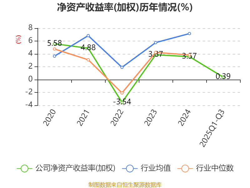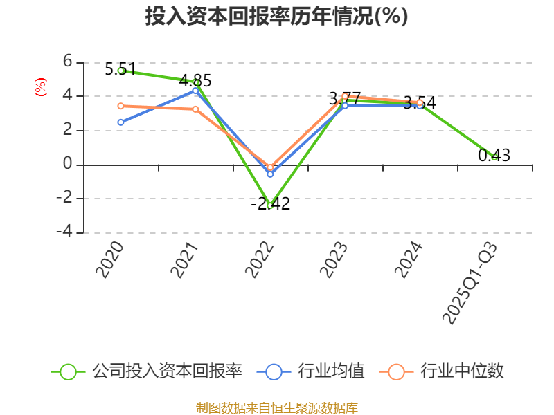 盈利能力方面, 2025年前三季度公司加权平均净资产收益率为0.39%,同比下降1.17个百分点。公司2025年前三季度投入资本回报率为0.43%,较上年同期下降1.13个百分点。